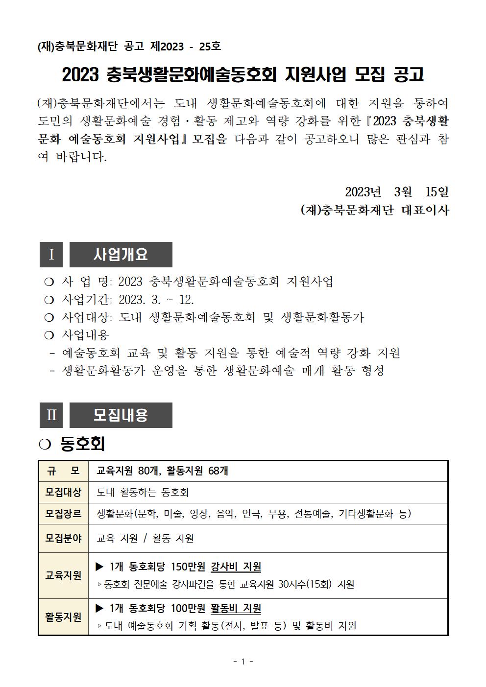 | 2023 충북생활문화예술동호회 지원사업 모집공고 | |||||