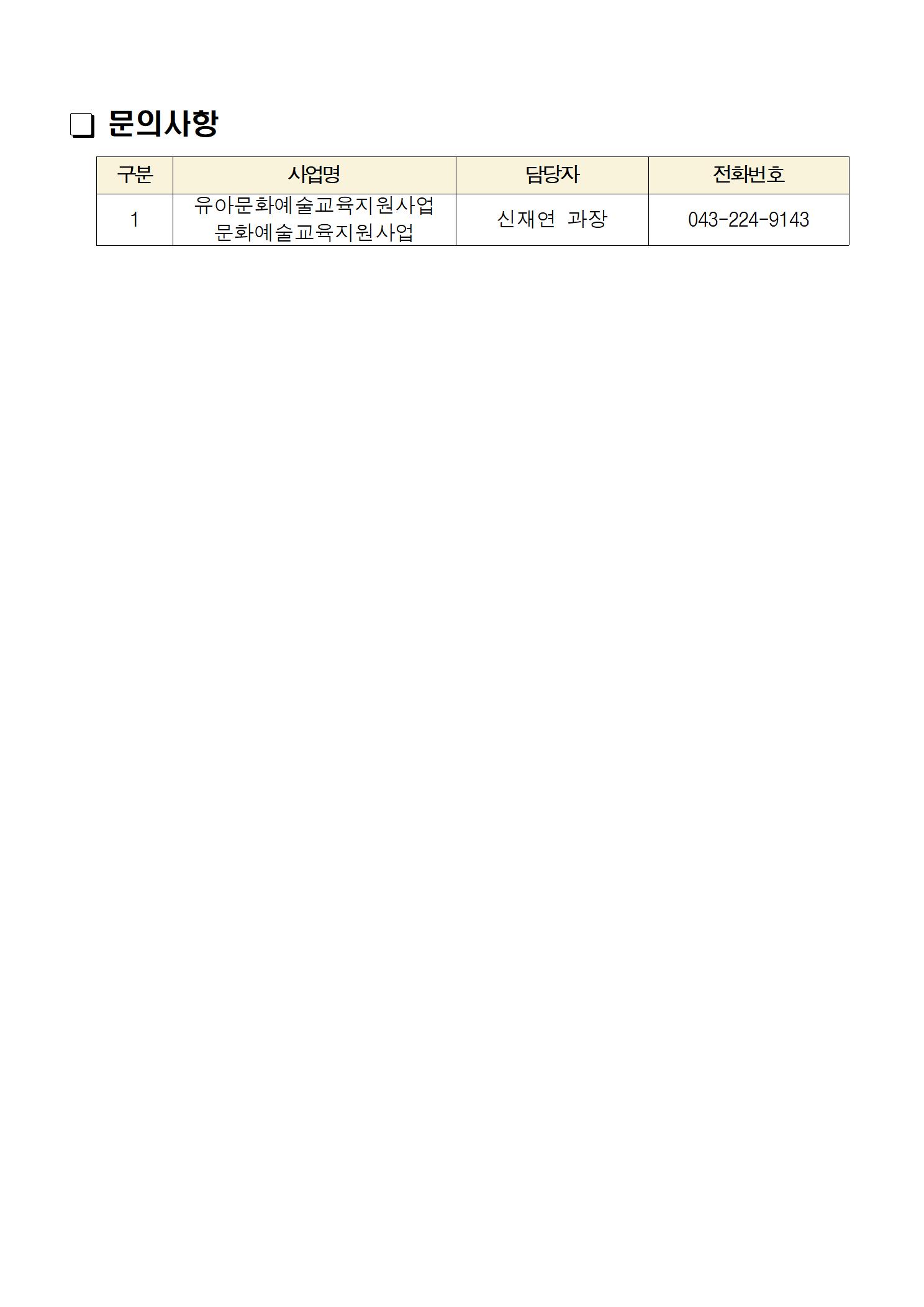 | 분류 | 충북문화예술교육지원센터 | ||||