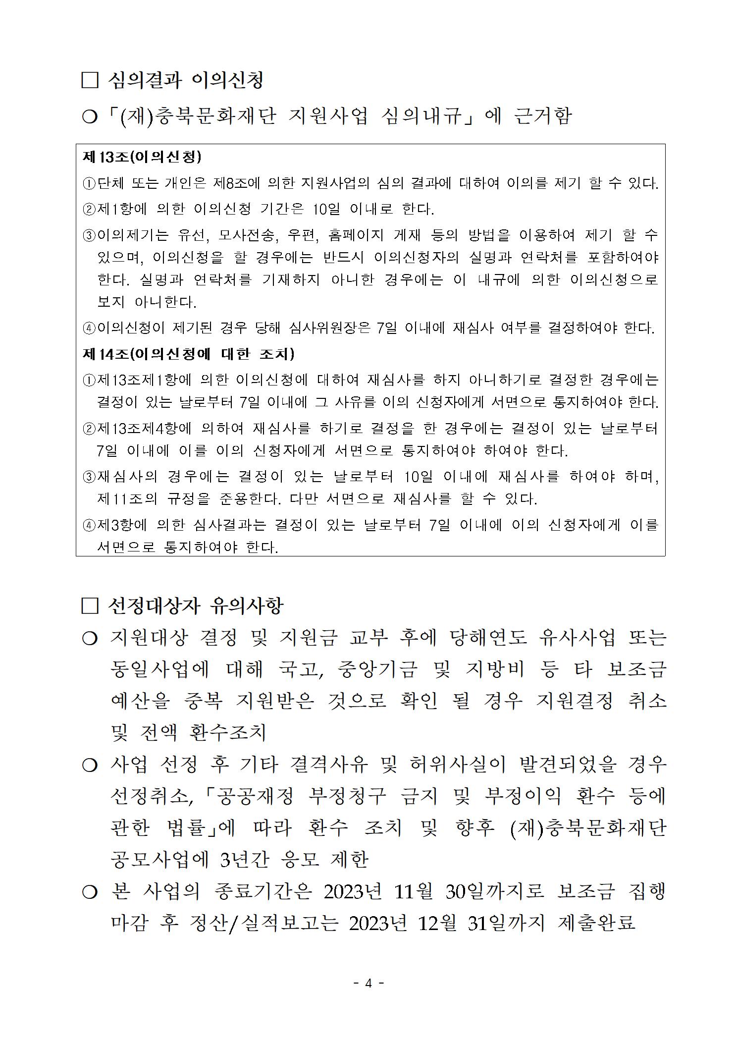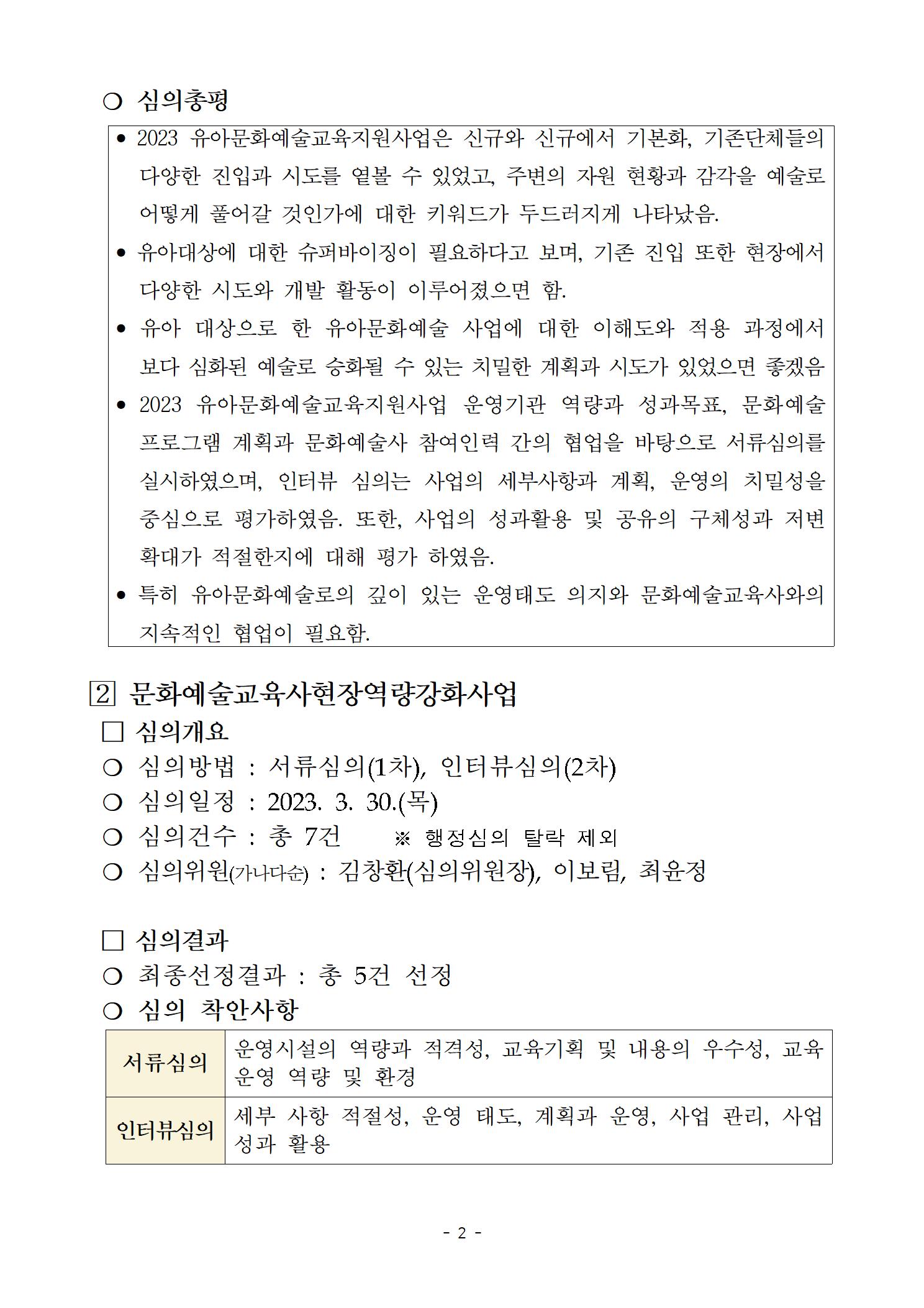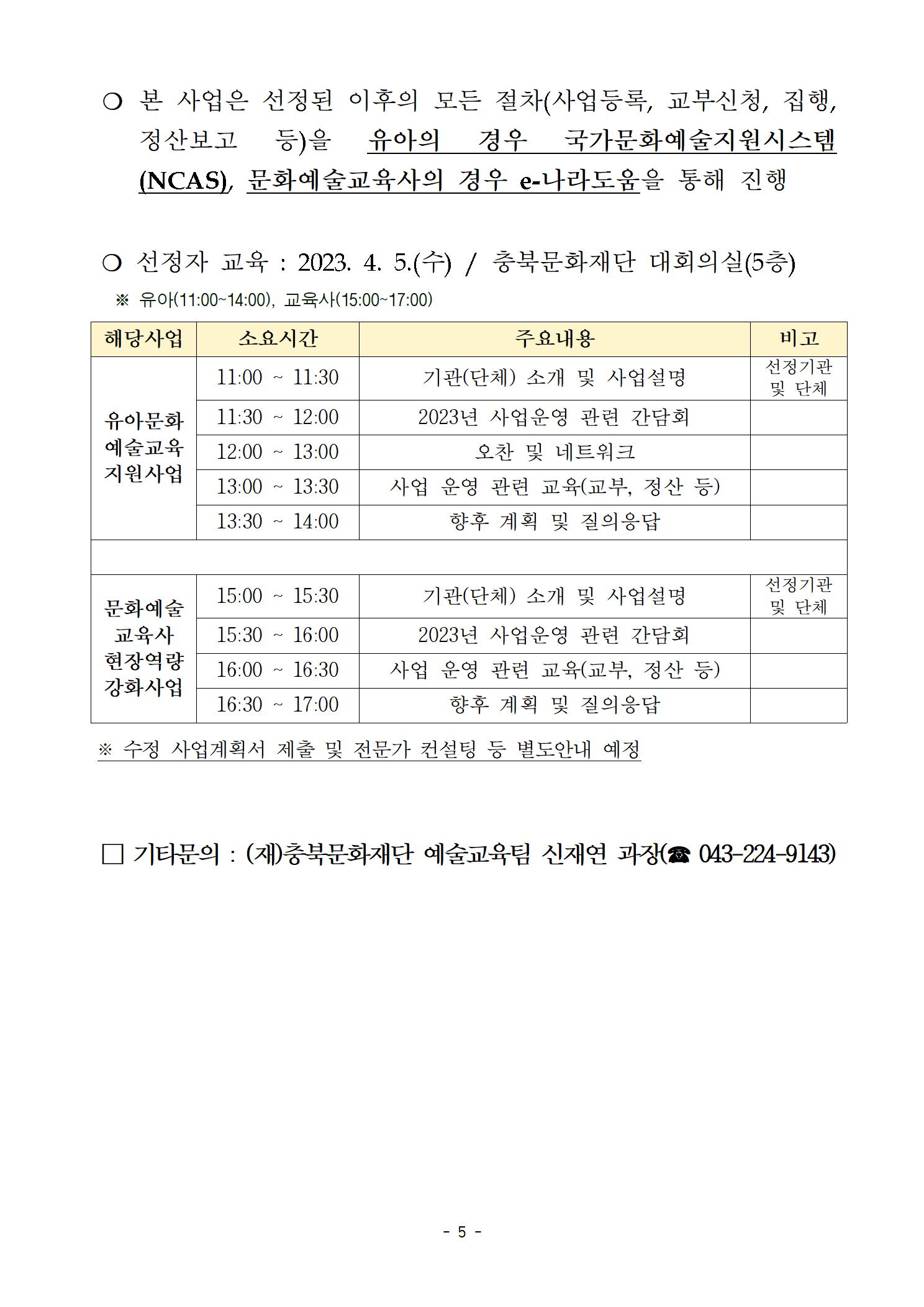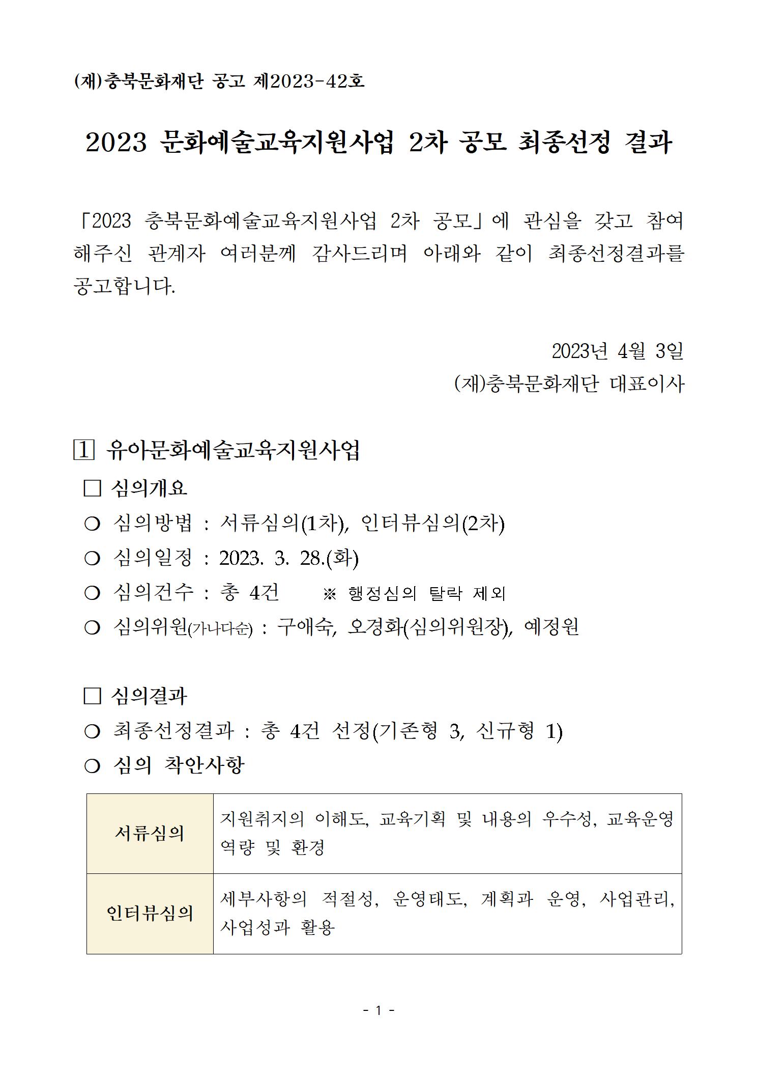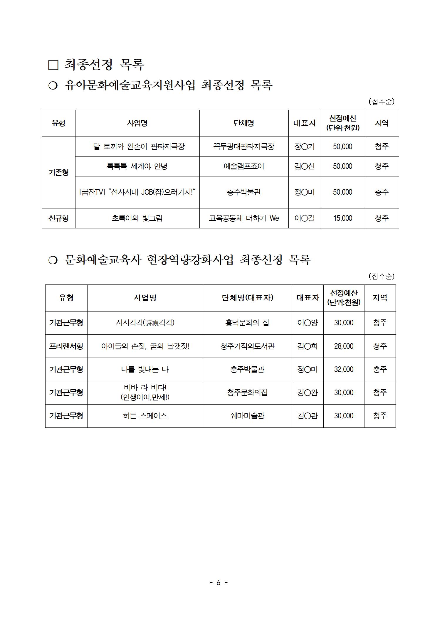 | 2023년 충북문화예술교육 지원사업 2차 공모 최종 선정 결과 안내 | |||||
