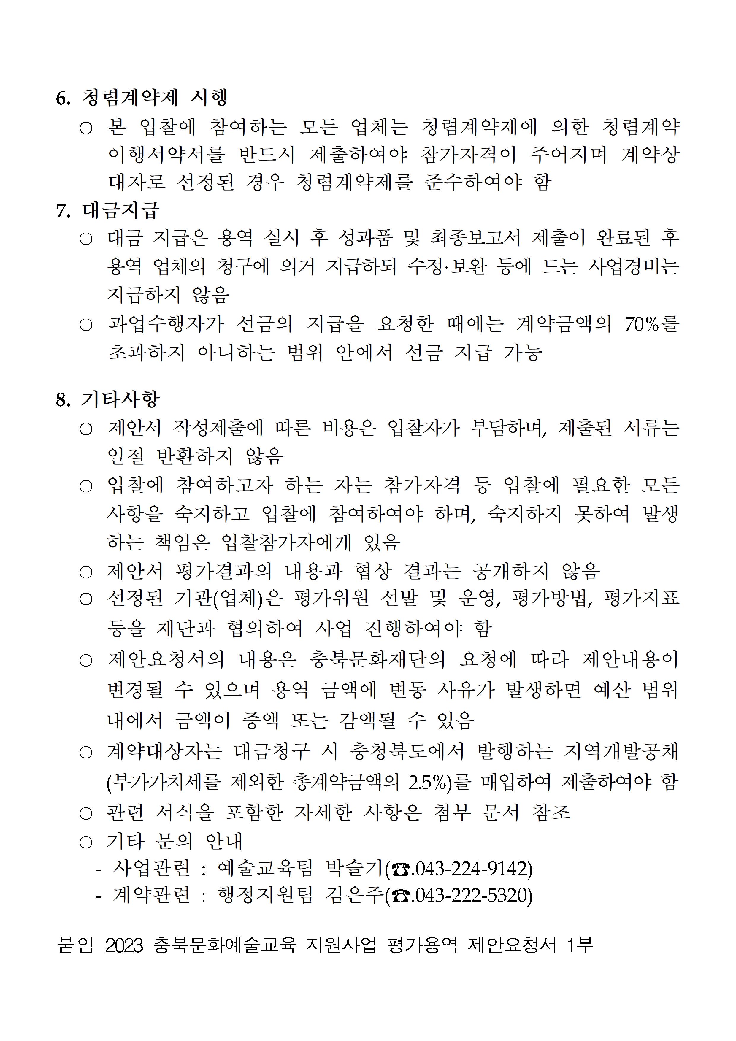 | 2023 충북문화예술교육 지원사업 평가용역 입찰 공고 안내 | |||||