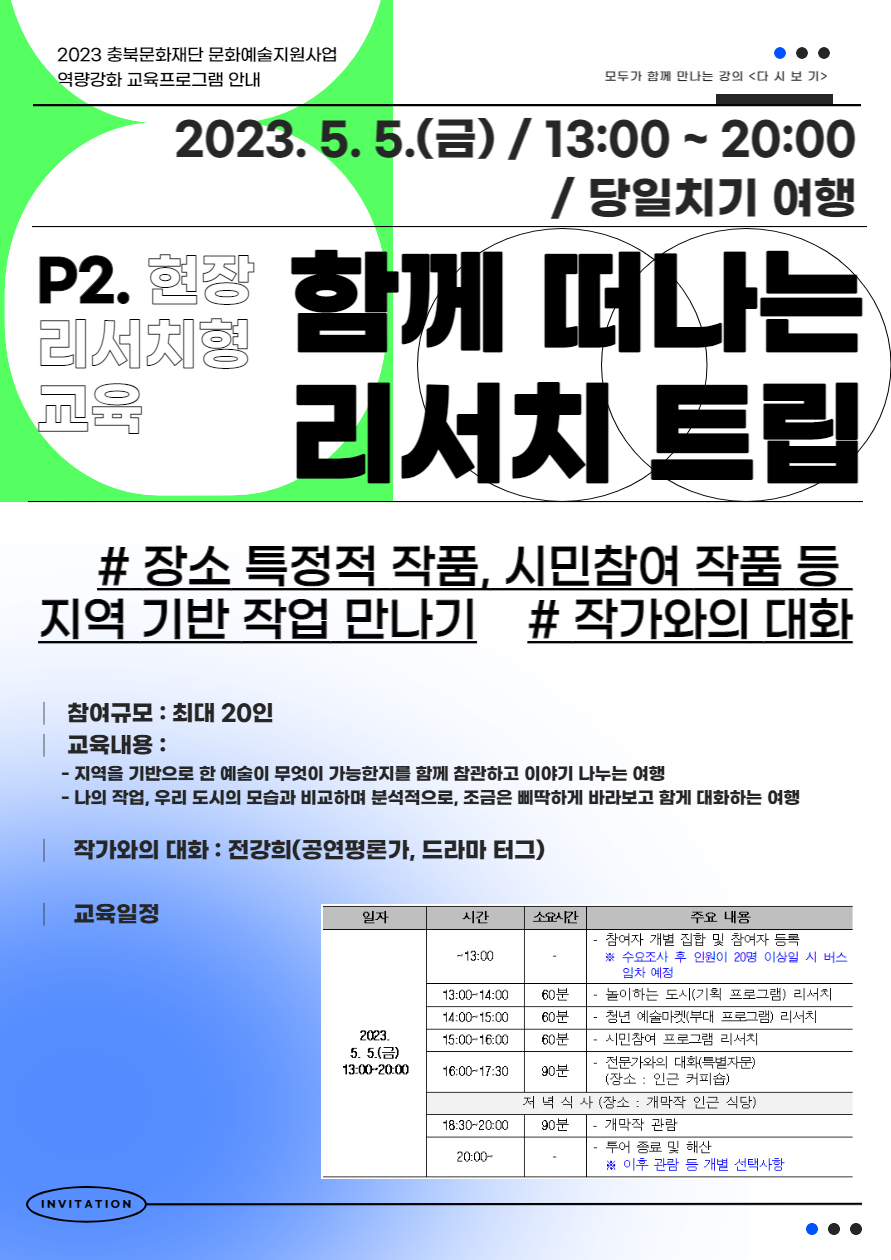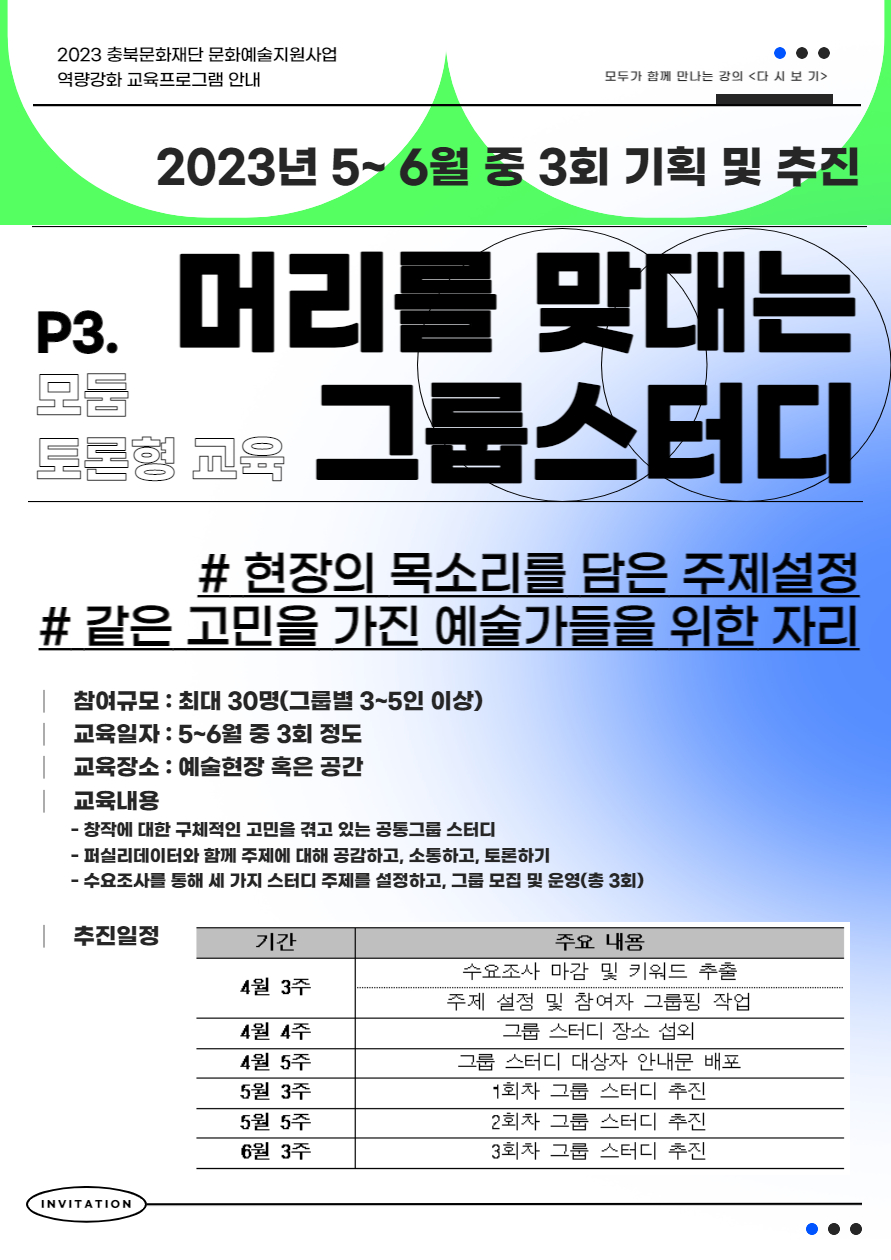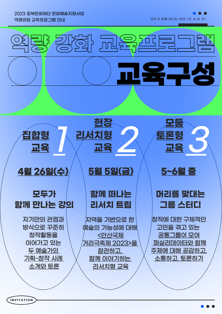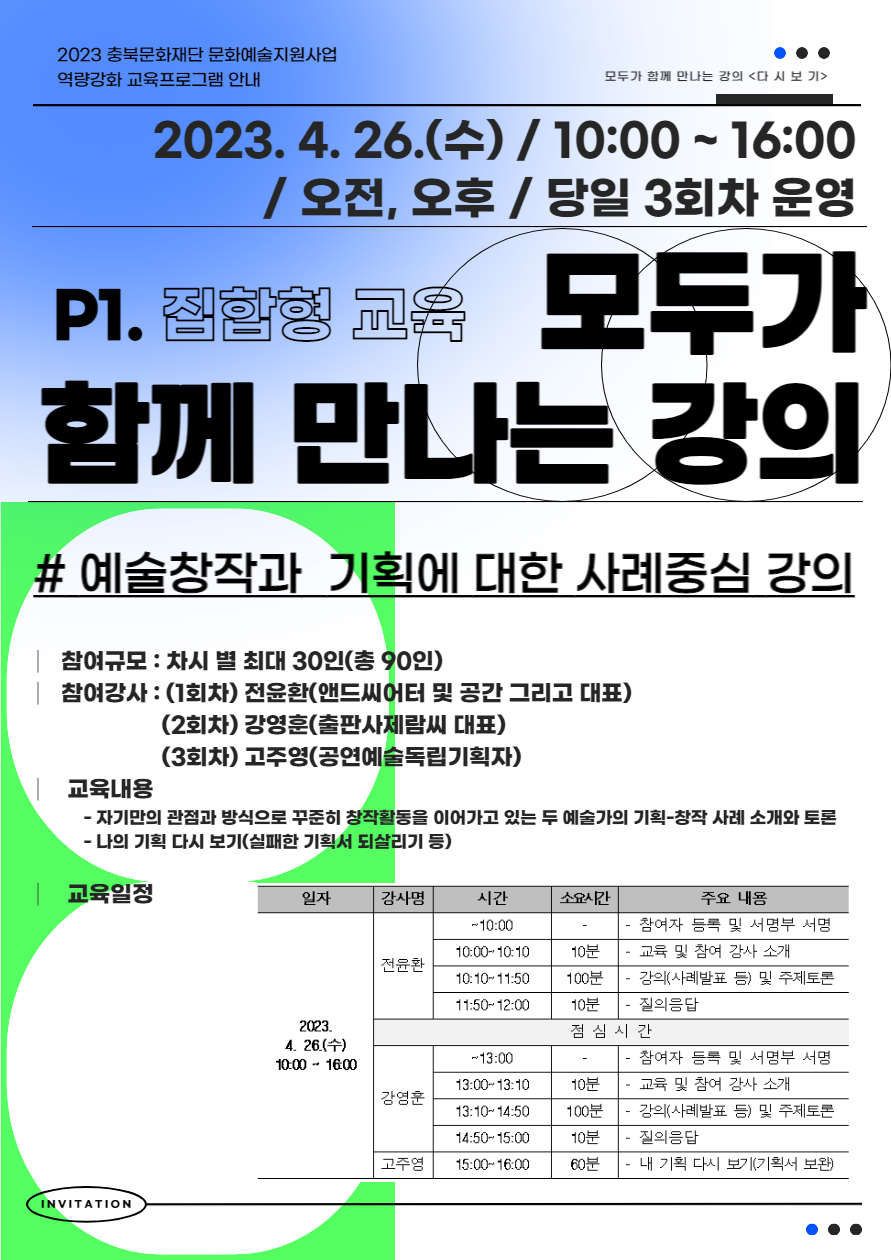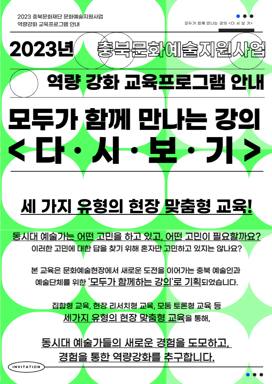 | 2023년 충북문화재단 문화예술지원사업 역량강화 교육프로그램 <다시보기> 안내 | |||||