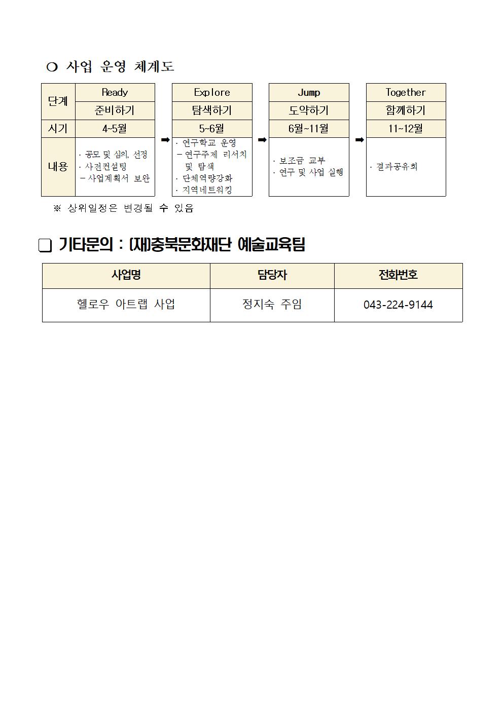 | 분류 | 충북문화예술교육지원센터 | ||||