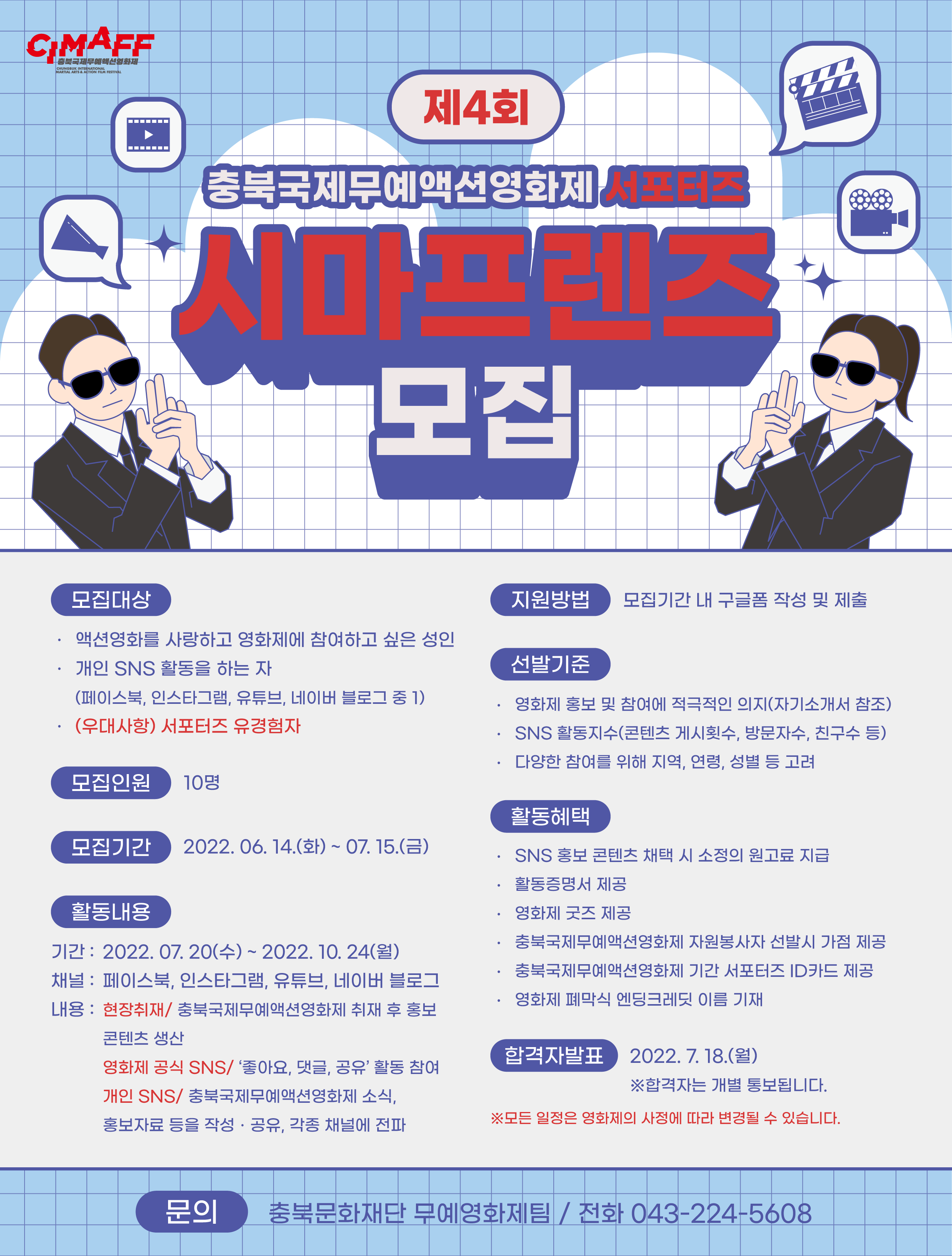 | 제4회 충북국제무예액션영화제 온라인 서포터즈 '시마프렌즈'를 모집합니다. | |||||