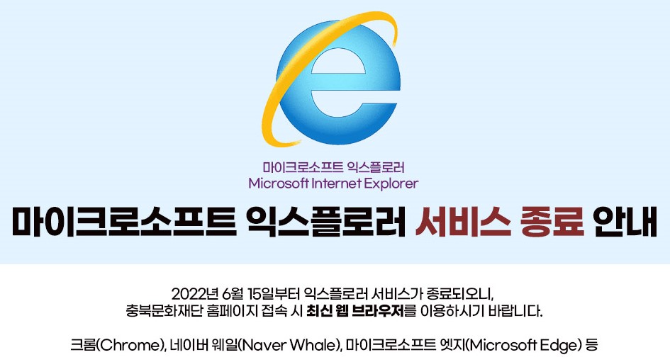 | 익스플로러 서비스 종료에 따른 웹브라우저 이용 안내 | |||||