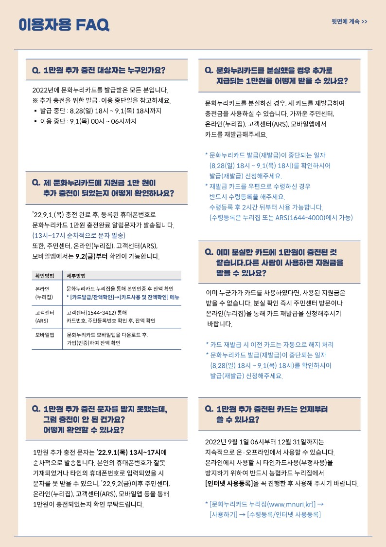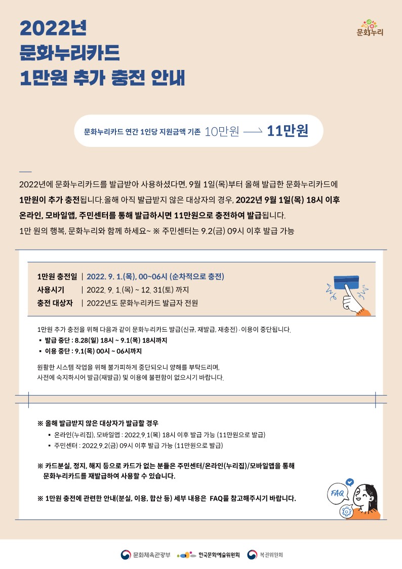 | 2022년 문화누리카드 1만원 추가 충전(9.1.~) 안내 | |||||