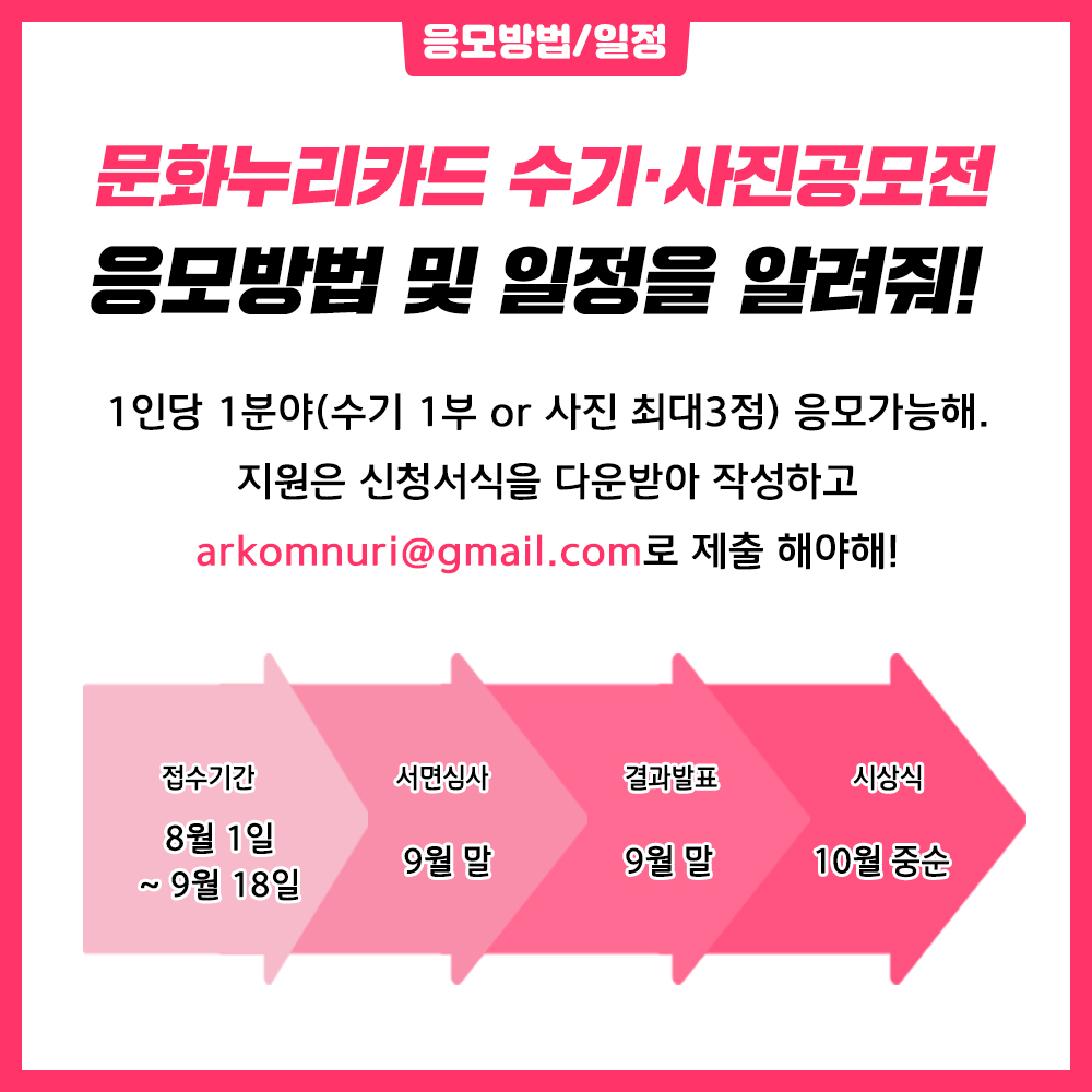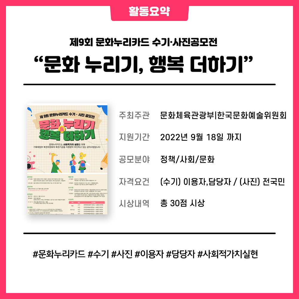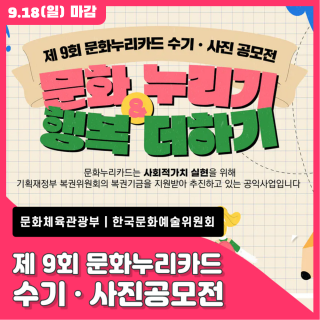 문화누리카드 수기 사진공모전이 ~ 9월 18일 까지로 연장되었습니다!