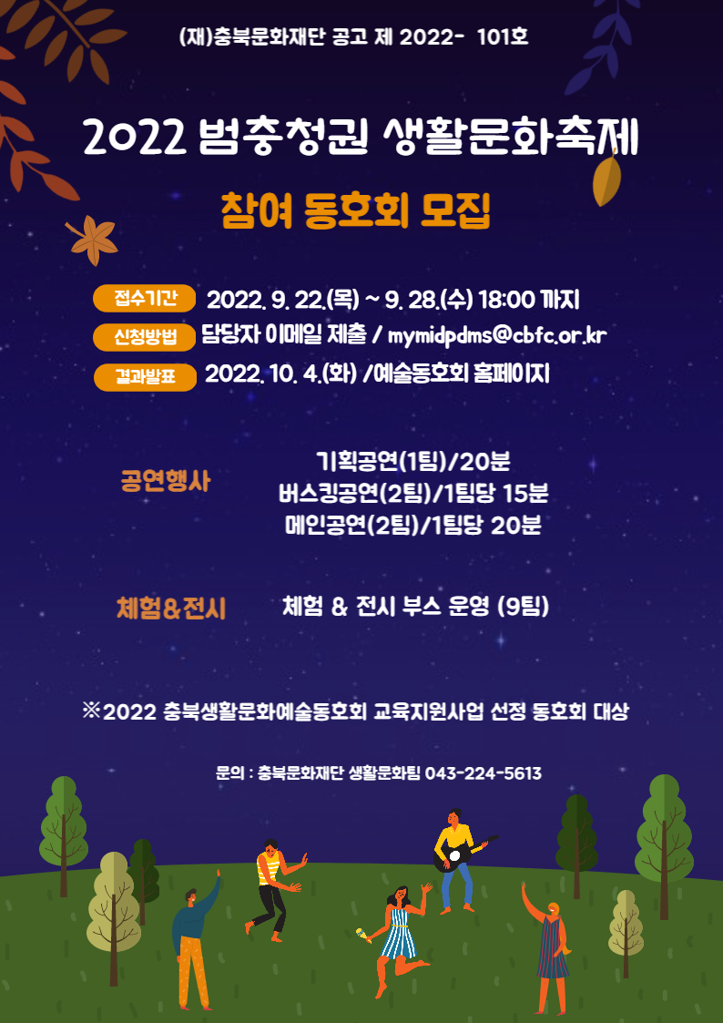 | 2022 범충청권 생활문화축제 참여 동호회 모집 안내 | |||||