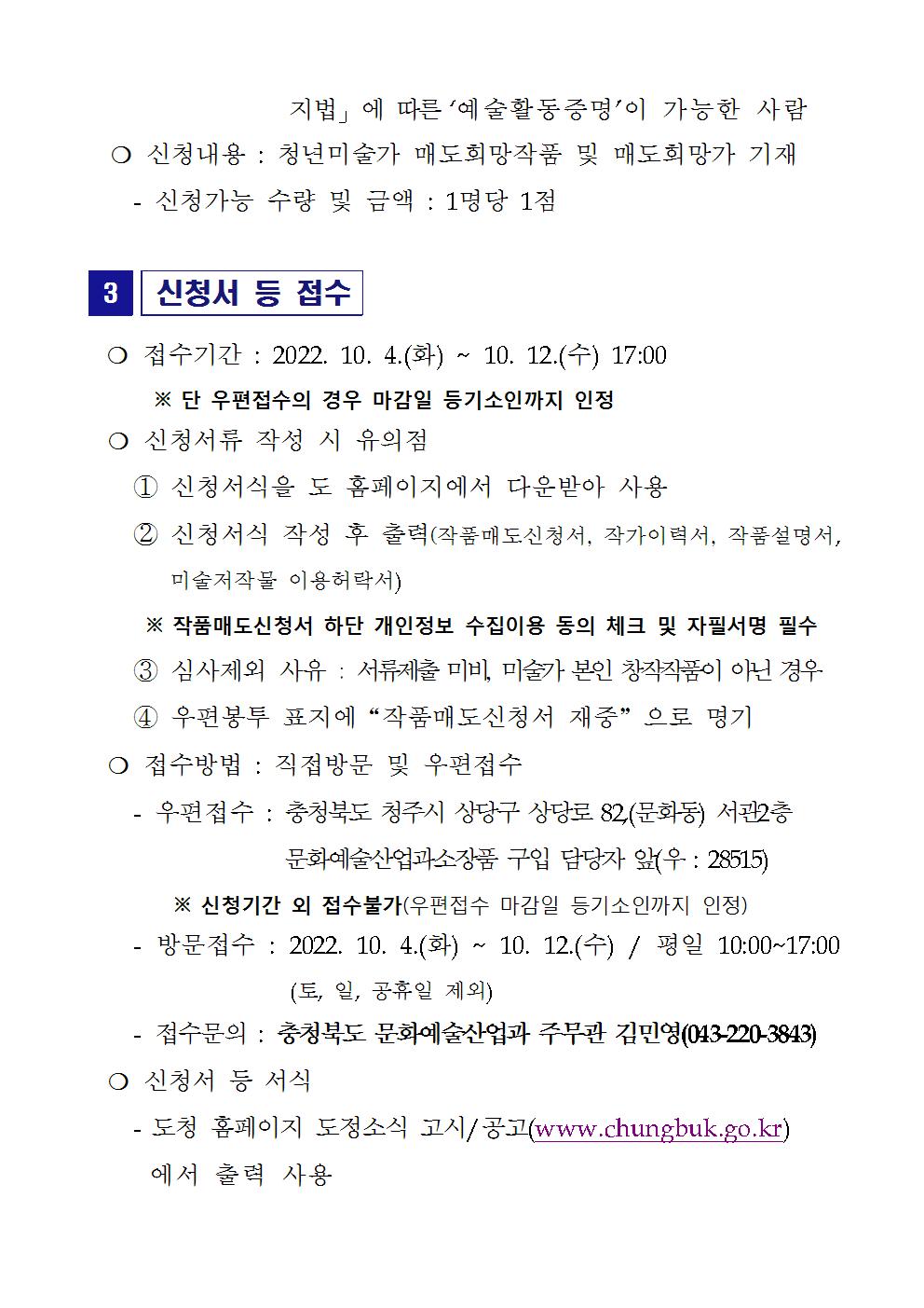 2022년 하반기 충청북도 소장품 구입과 관련하여 아래와 같이 공고하오니 청년미술가 여러분의 많은 참여를 바랍니다.