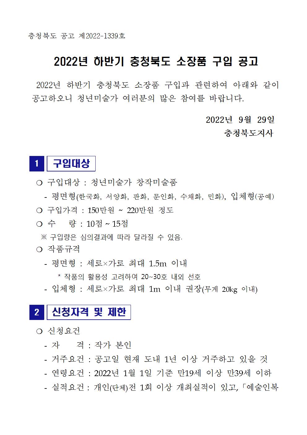 | 2022년 하반기 충청북도 소장품 구입 공고 | |||||