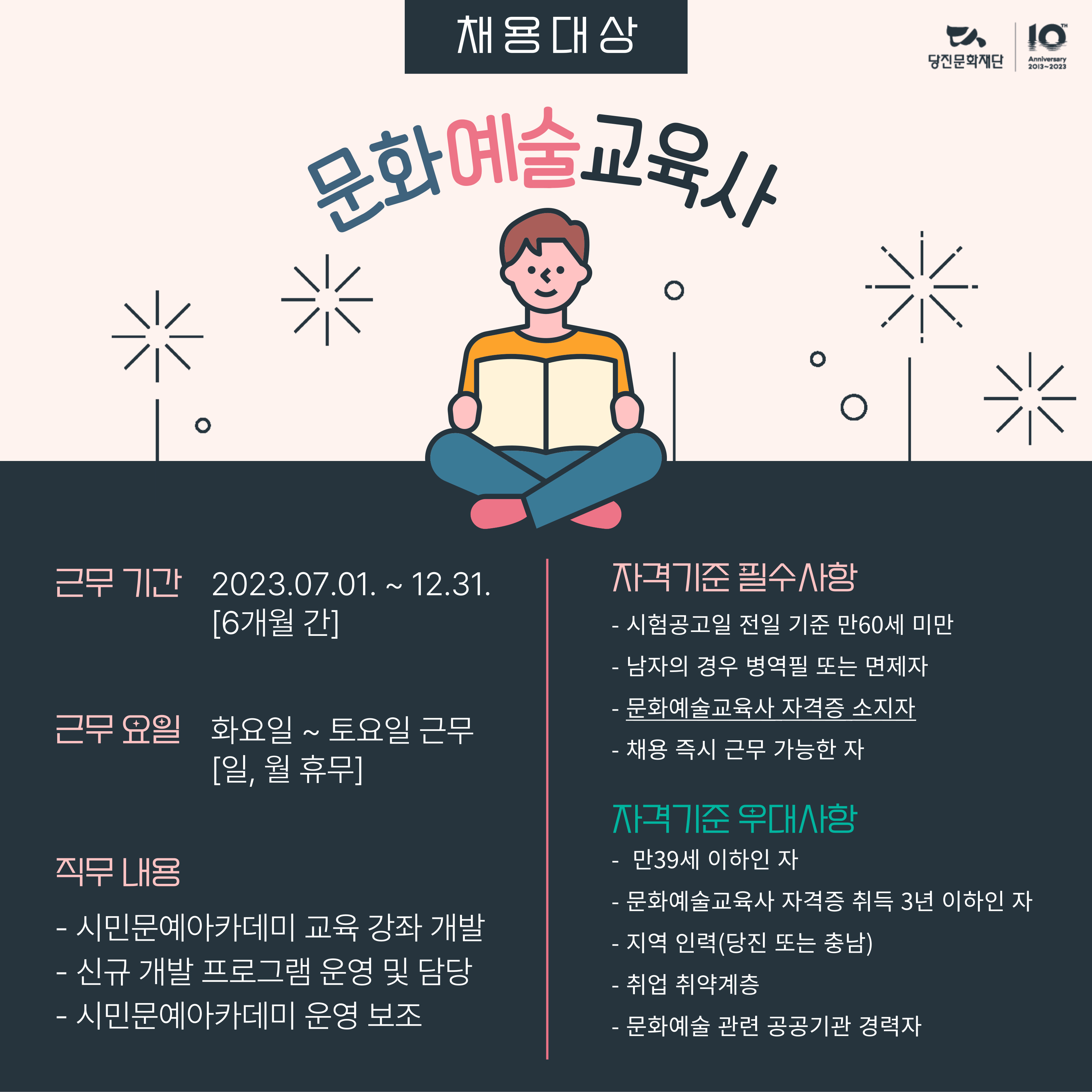 | [당진문화재단] 2023 문화예술교육사 채용공고 | |||||