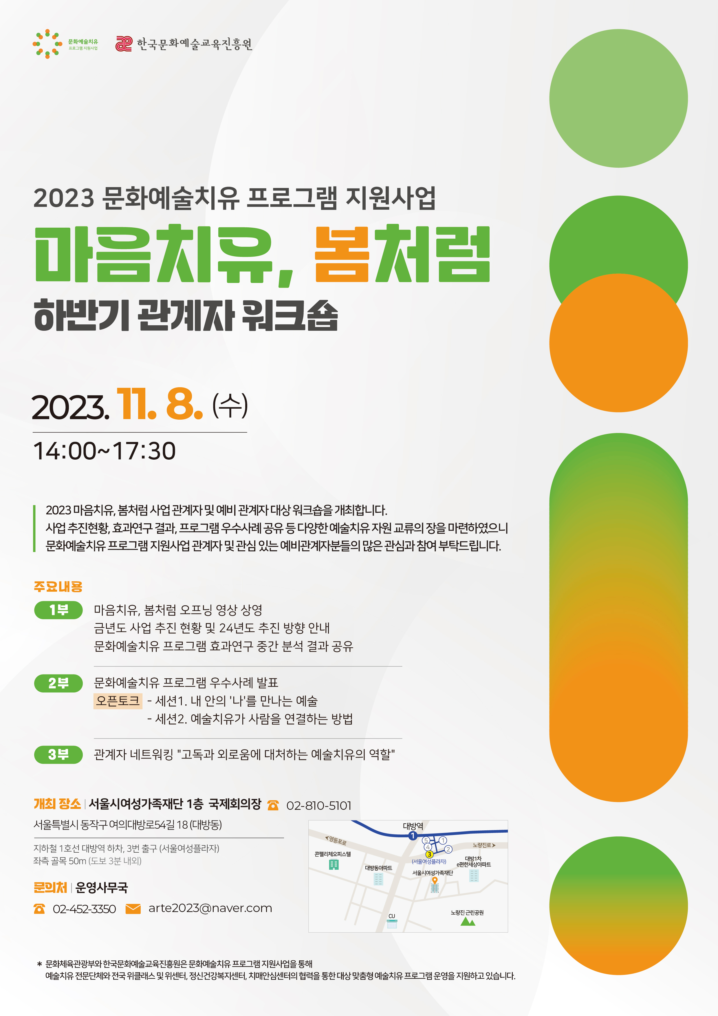 [한국문화예술교육진흥원] 2023 「마음치유, 봄처럼」 <하반기 관계자 워크숍> 개최 (11/8)