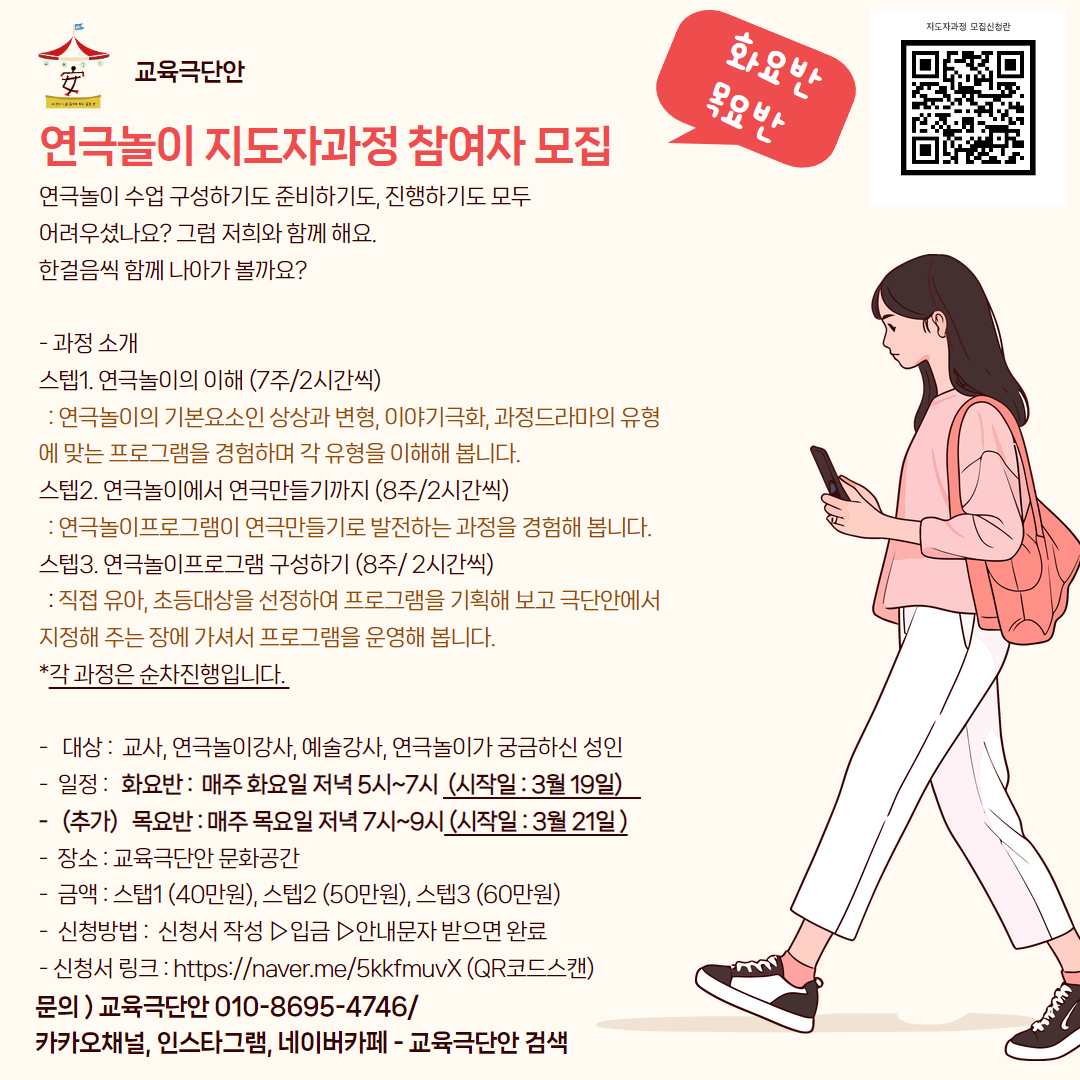 교육극단안에서 연극놀이지도자과정을 오픈하였습니다.