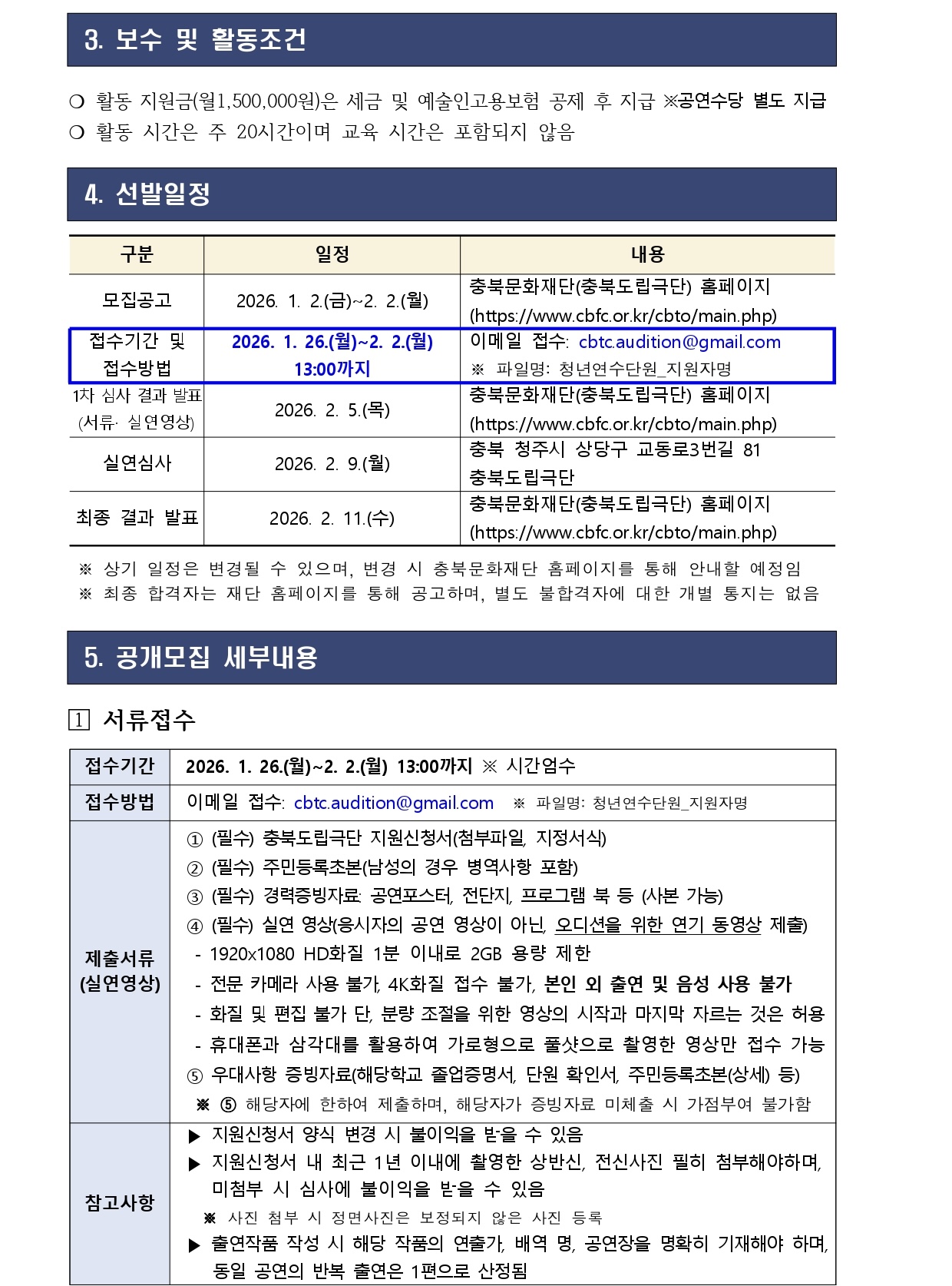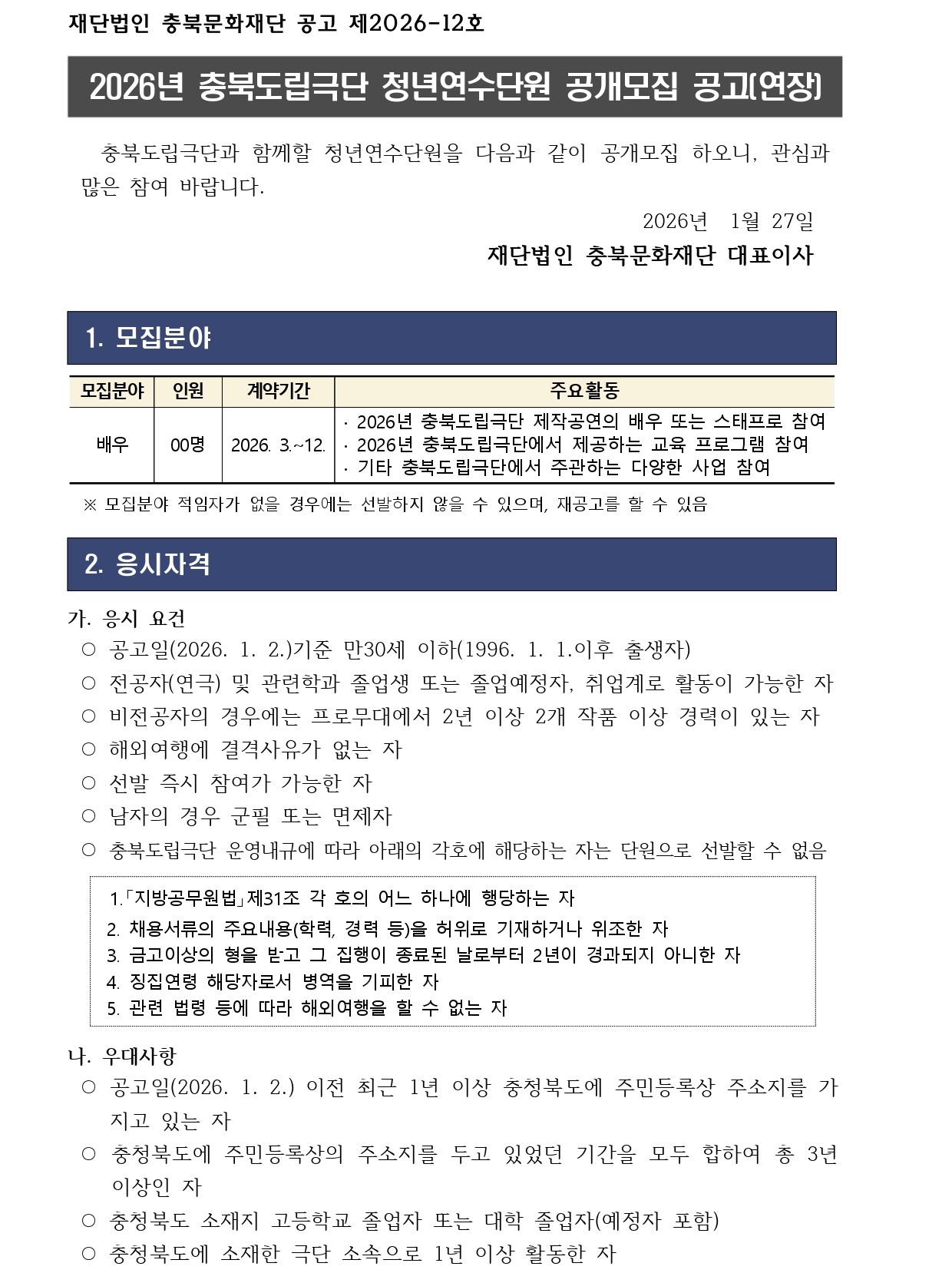 | 2026년 충북도립극단 청년연수단원 공개모집(연장) | |||||