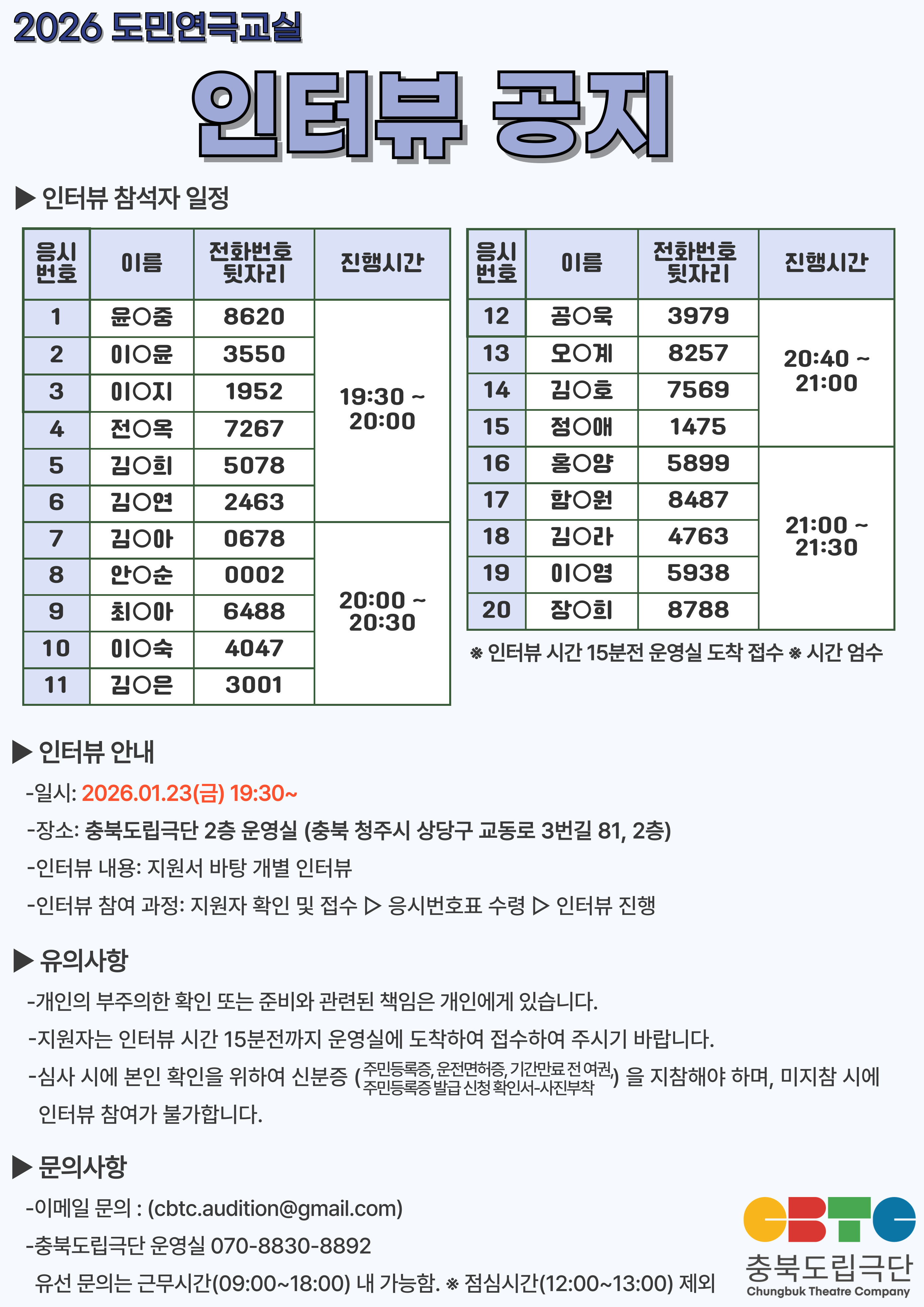 | 충북도립극단 <2026 도민연극교실> 인터뷰 일정 공지 | |||||