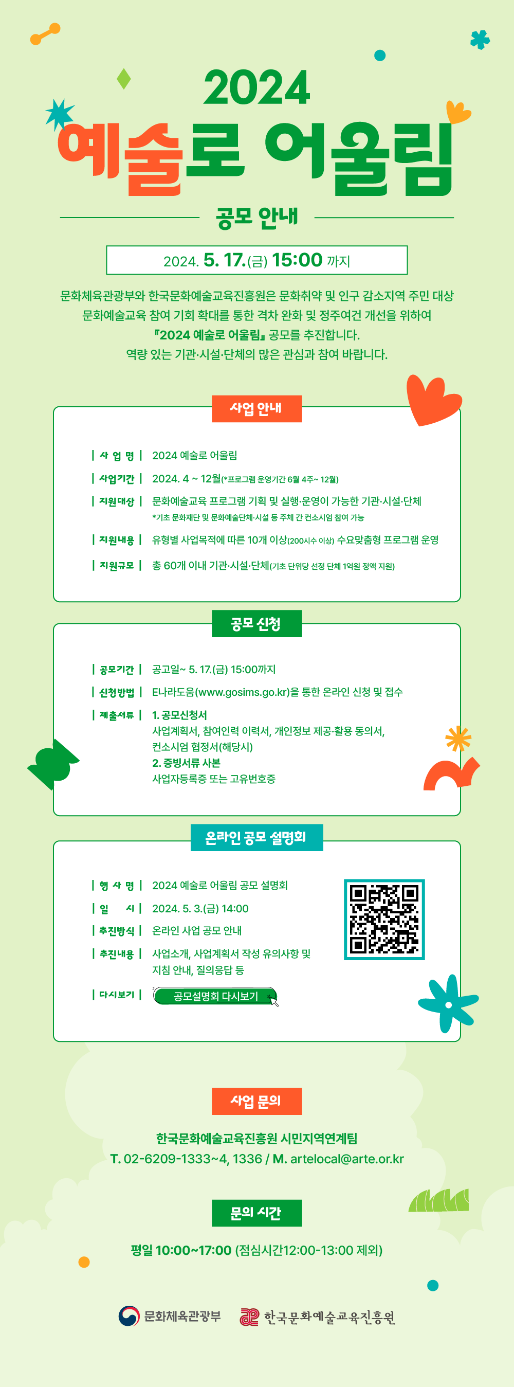 | [한국문화예술교육진흥원] 2024예술로 어울림 공모 안내 | |||||