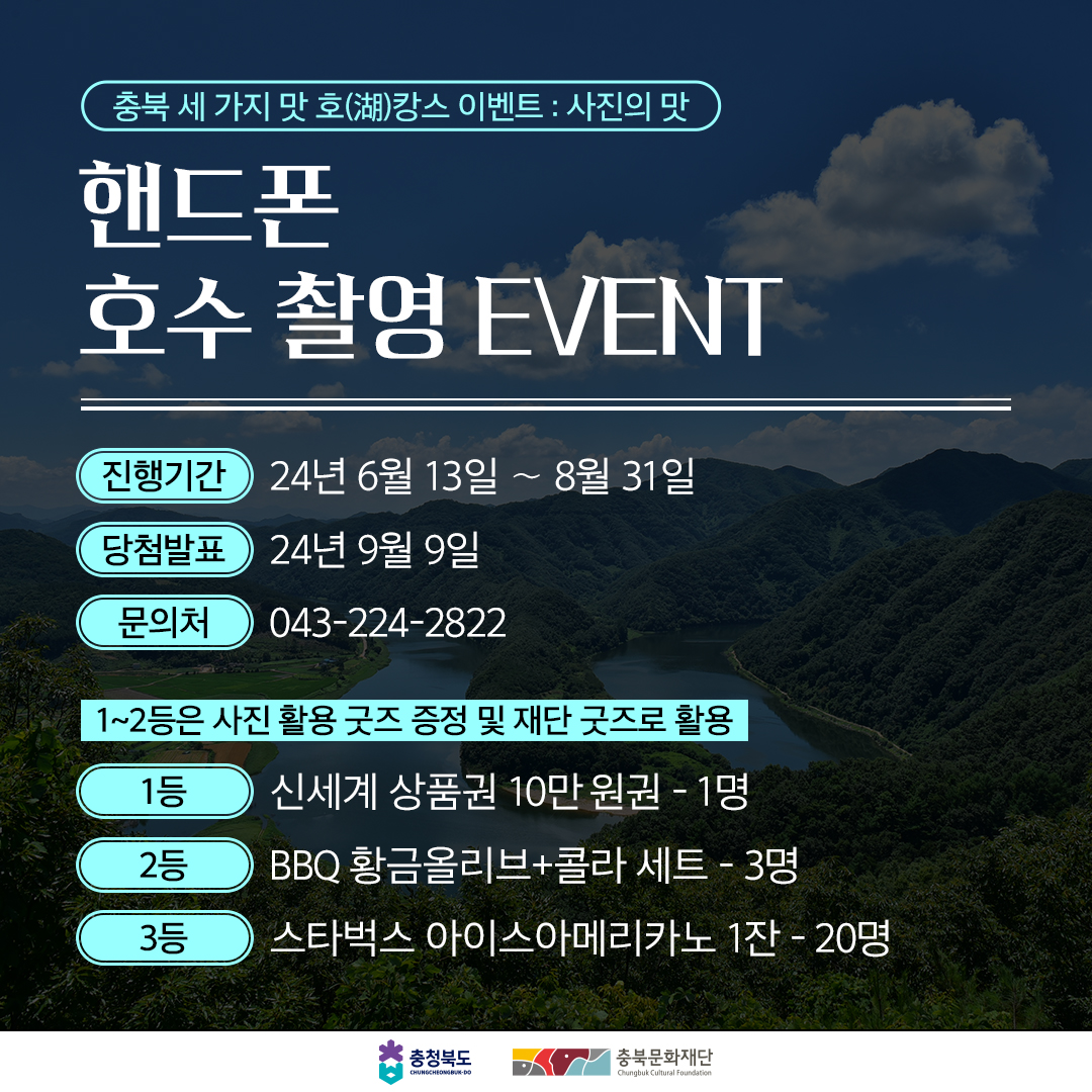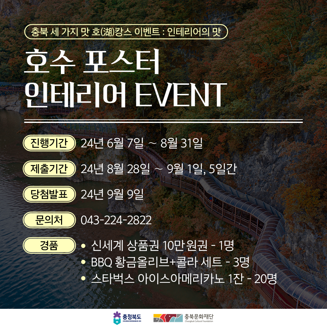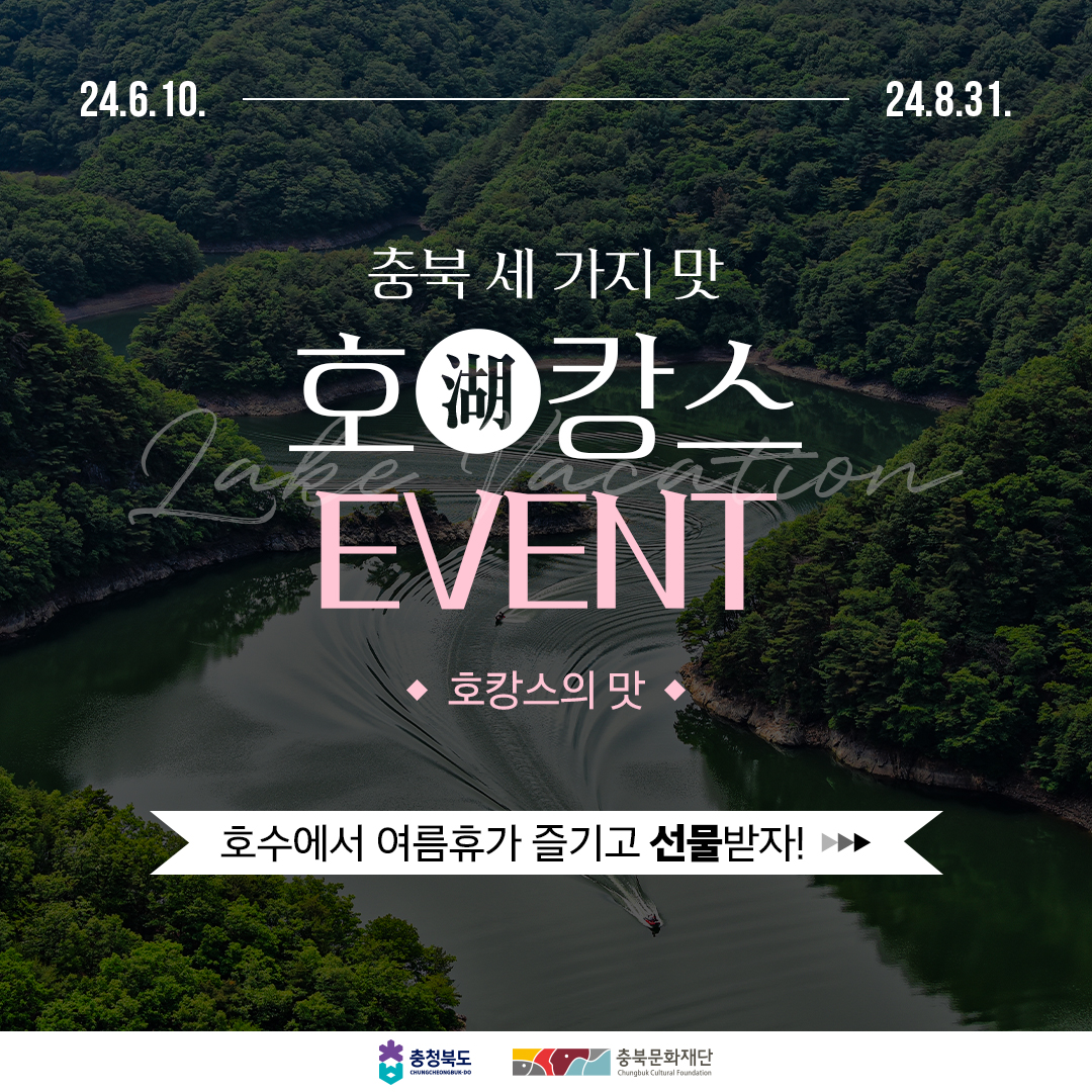 충북 여름 호(湖)캉스 이벤트 기간: 2024. 6. 7.~ 8. 31.