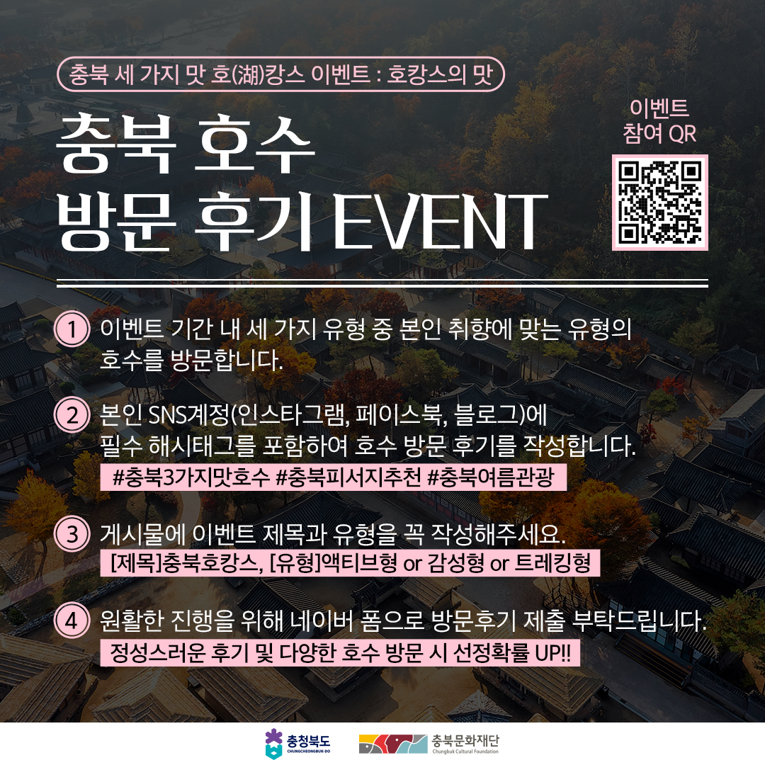 문의사항: 충북문화재단 관광마케팅팀 043-224-2822
