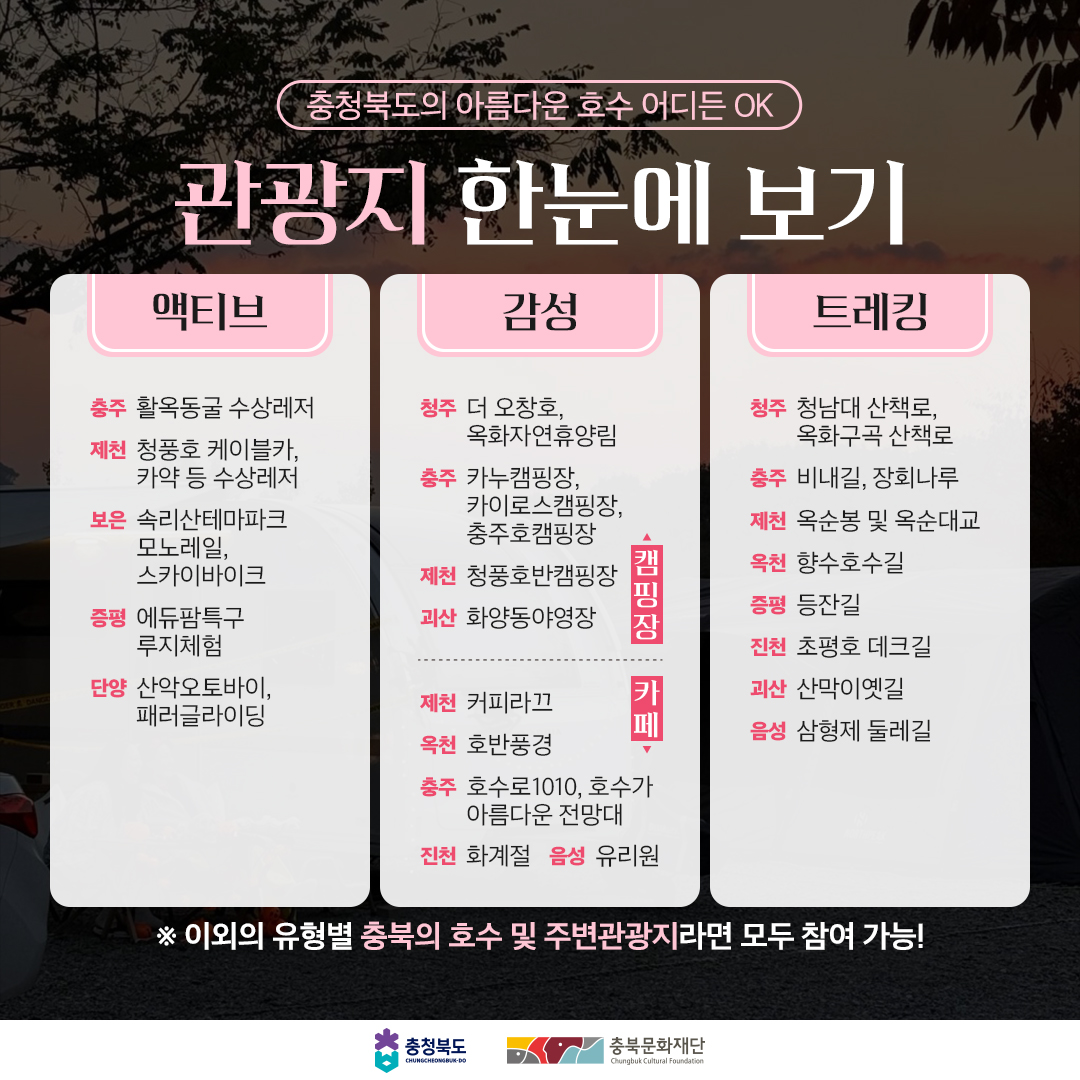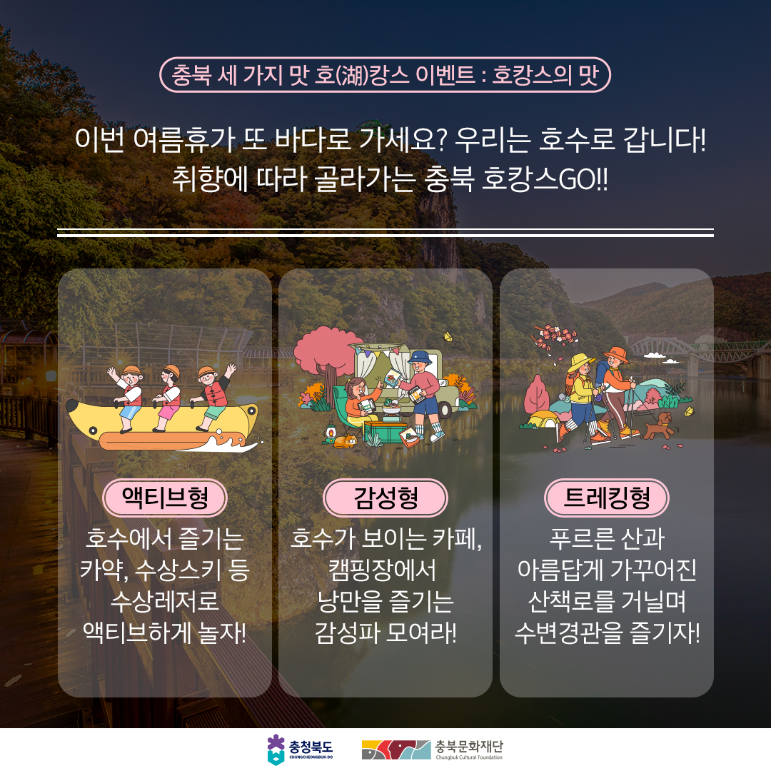 | 올 여름은 충북 호수에서! 3가지맛 호(湖)캉스 이벤트 안내 | |||||