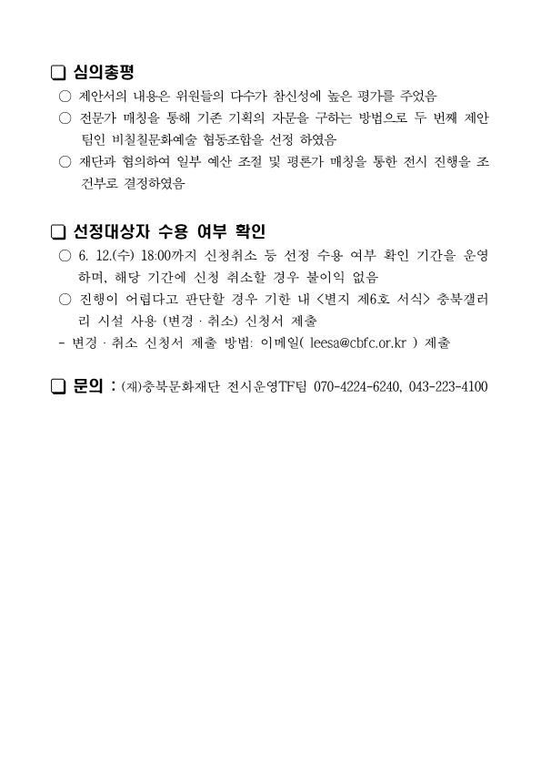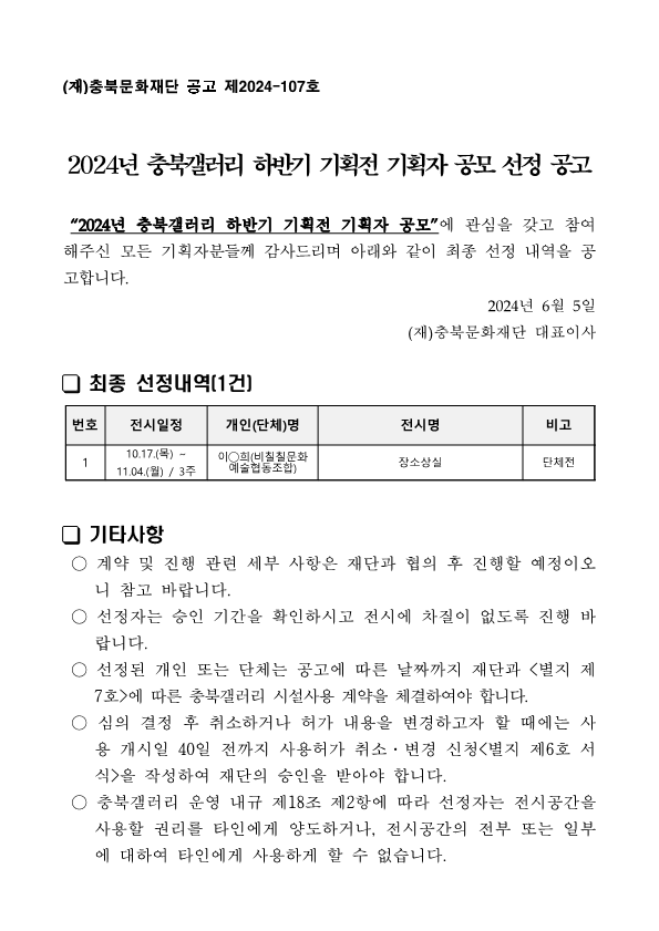 | 2024년 충북갤러리 하반기 기획전 기획자 공모 선정 공고 | |||||
