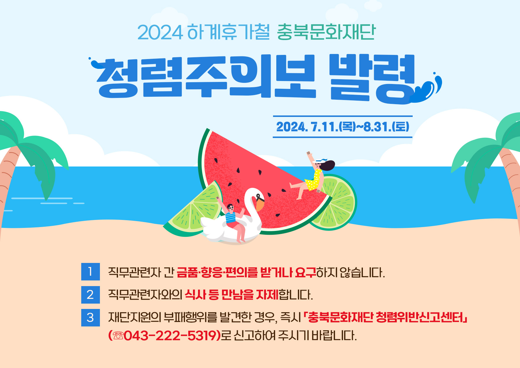 | (재)충북문화재단 2024 하계휴가철 청렴주의보 발령 | |||||