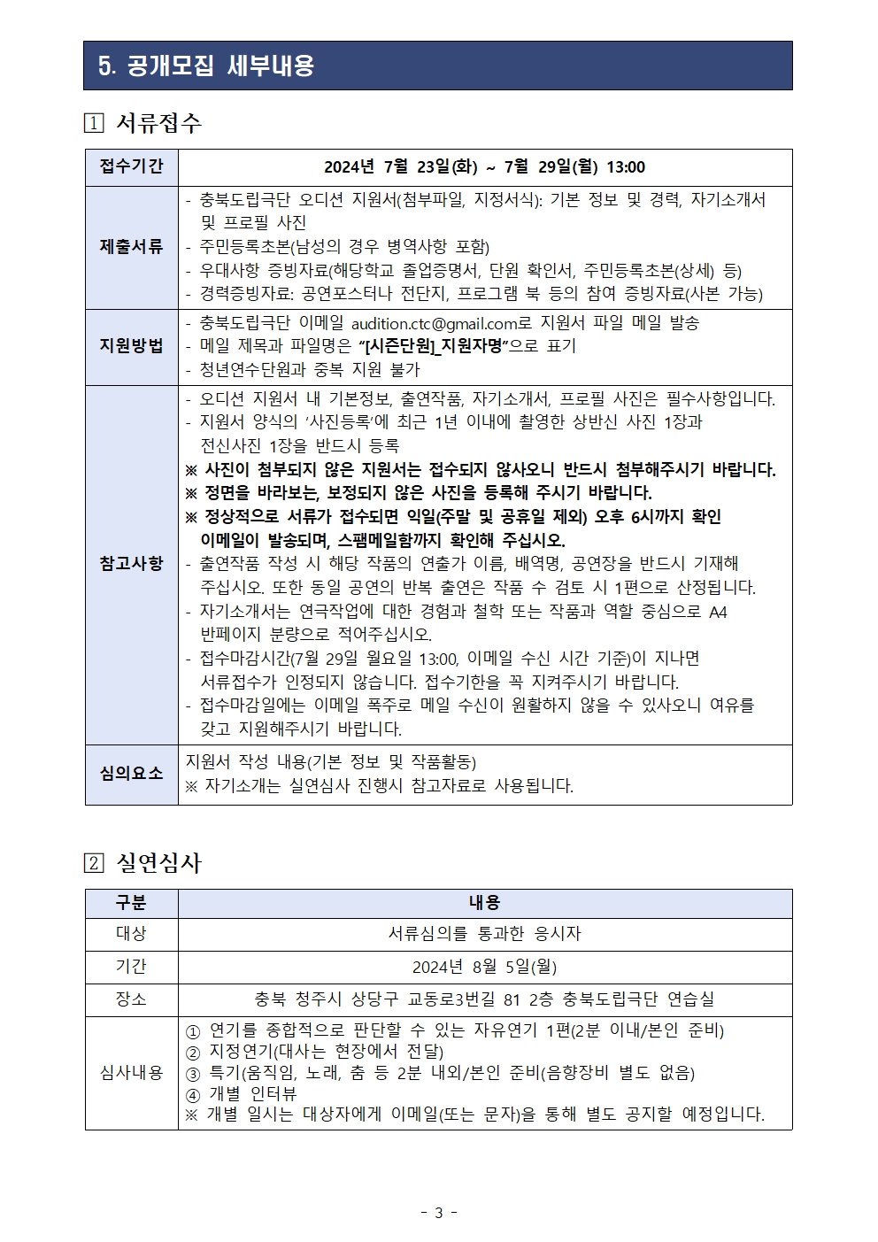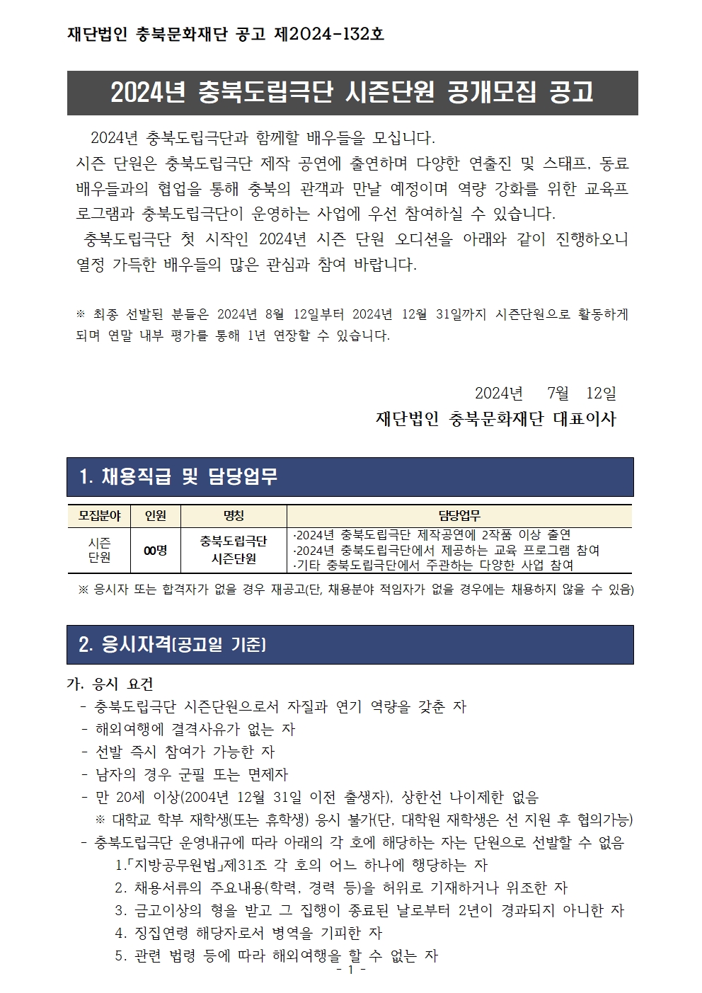 | 2024 충북도립극단 시즌단원 공개모집 공고 | |||||