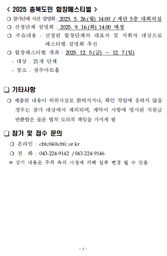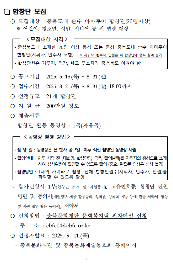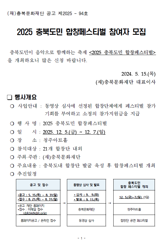 | 충북도민합창페스티벌 참여자 모집 공고 | |||||