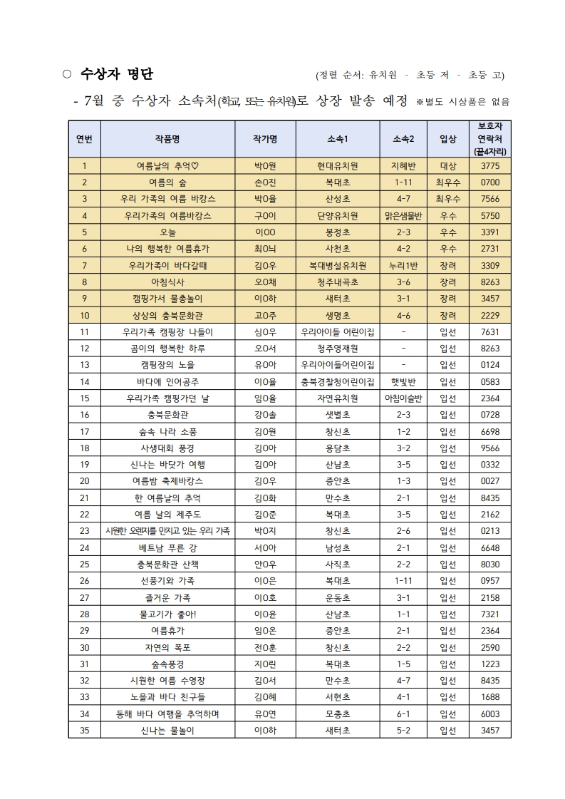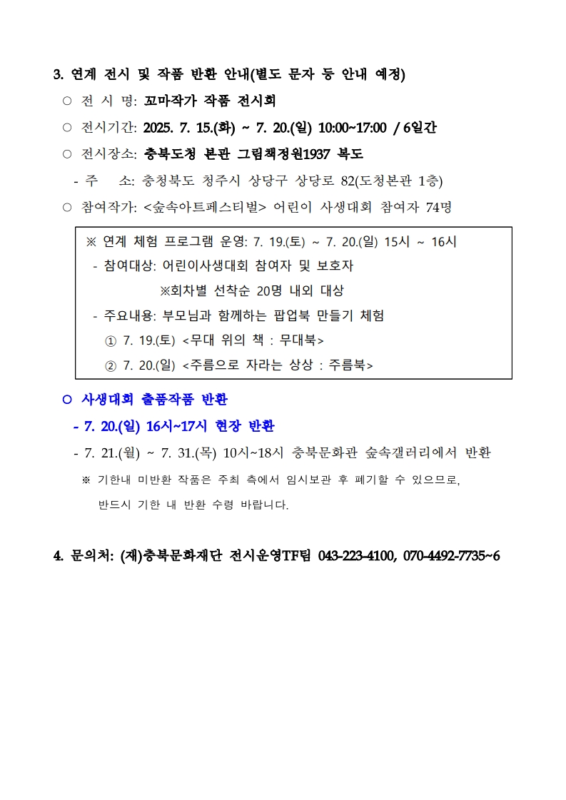| 2025 충북문화관 <숲속아트페스티벌> 어린이 사생대회 수상작 선정 결과 공고 | |||||