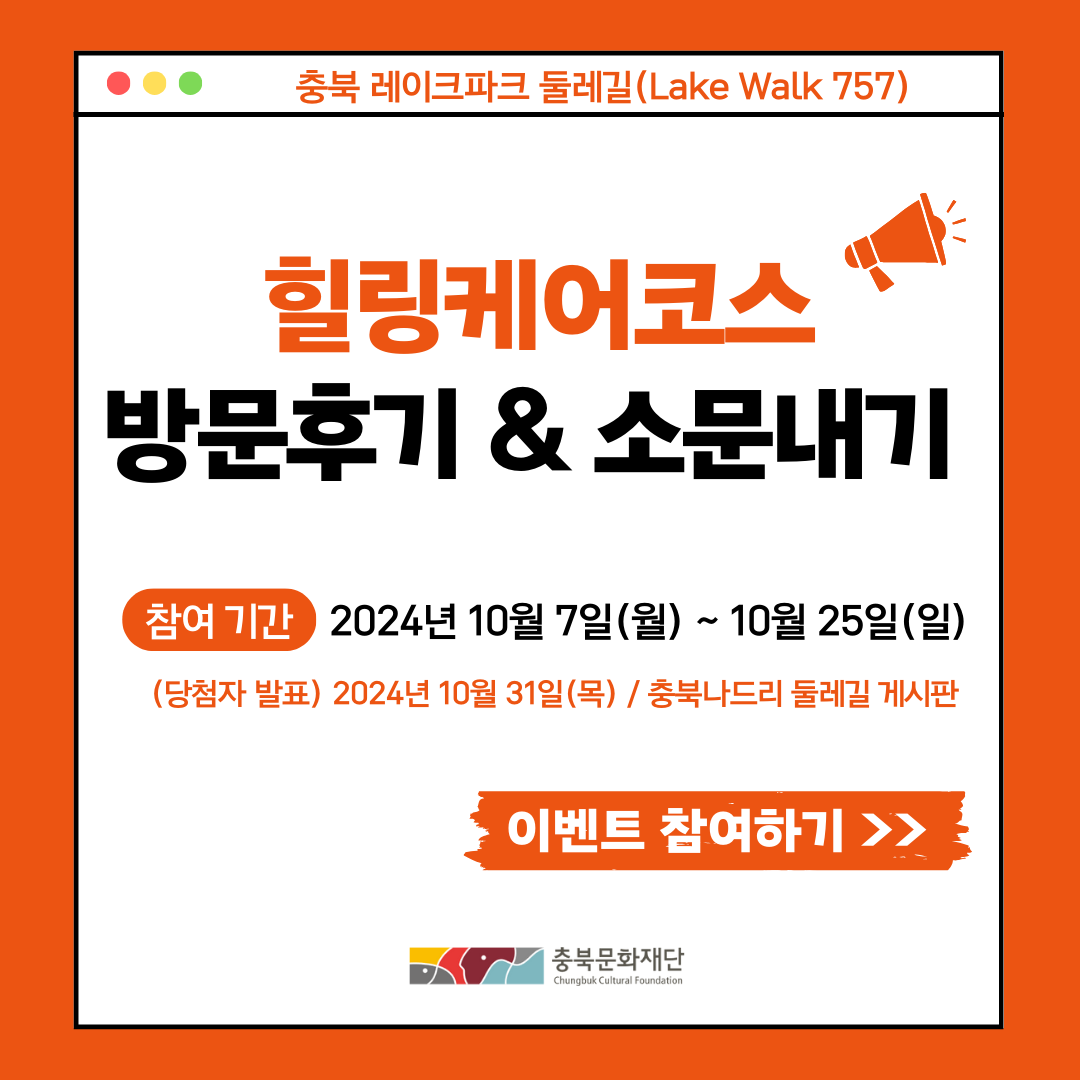 둘째, 충북 레이크파크 둘레길(힐링케어코스) 방문후기 이벤트를
