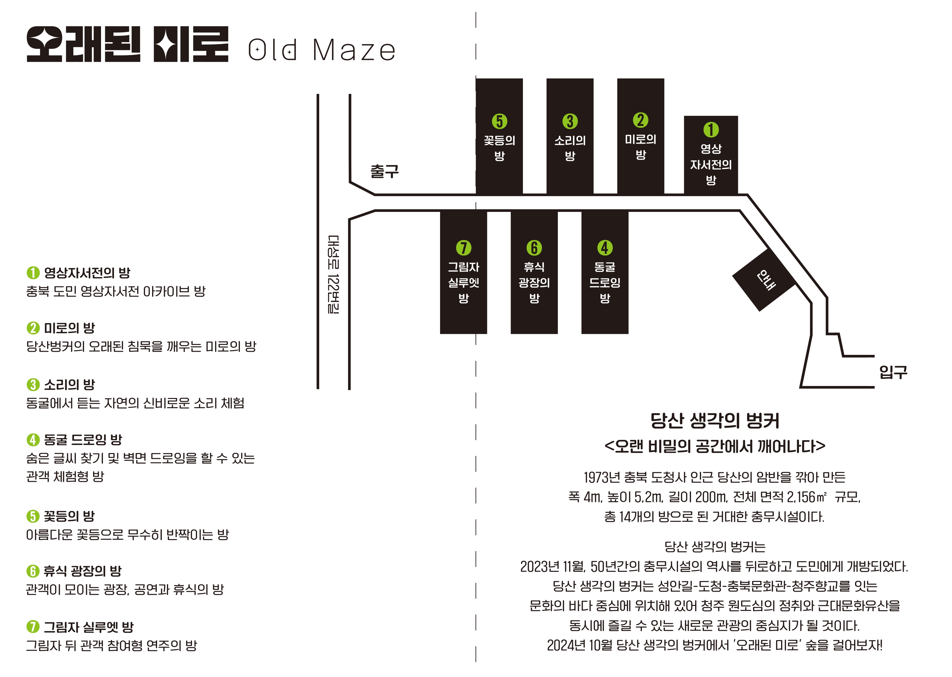 | 충북 문화의 바다, 당산 벙커 1차 행사 「오래된 미로」 | |||||