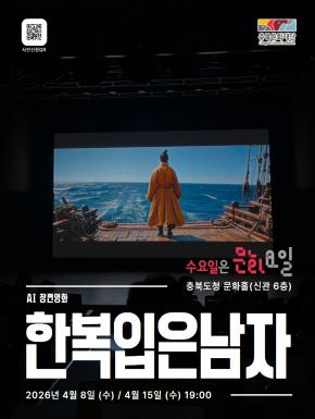 문화가 있는 날 확대 시행 기념 :: AI 영화 [한복 입은 남자] 특별상영회2026-04-01 ~ 2026-04-01충북도청 문화홀(신관 6층)