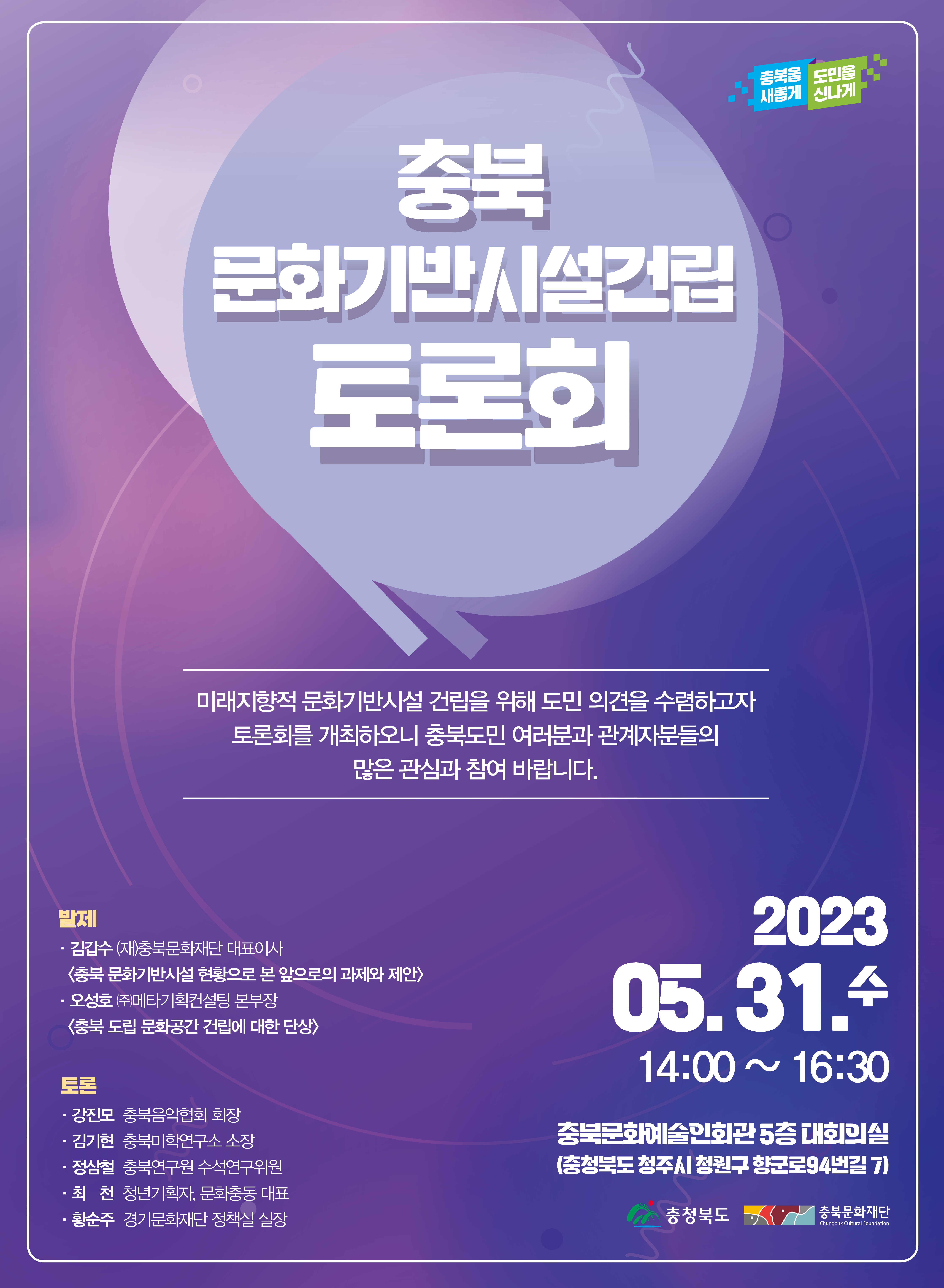 | 충북 문화기반시설 건립 토론회 안내 | |||||