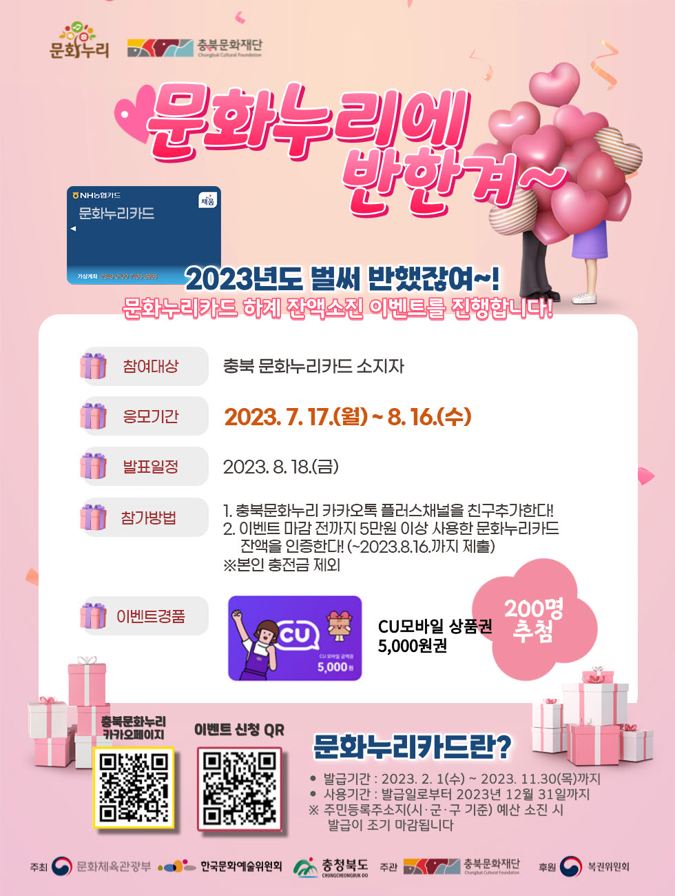 | 2023 문화누리카드 잔액소진 이벤트 <문화누리에 반한겨~> | |||||