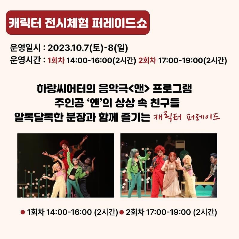 캐릭터퍼레이드를 통한 현장 즉흥 상황극, 뮤지컬 콘서트, 음악과 함께하는 마임공연, 마술쇼,