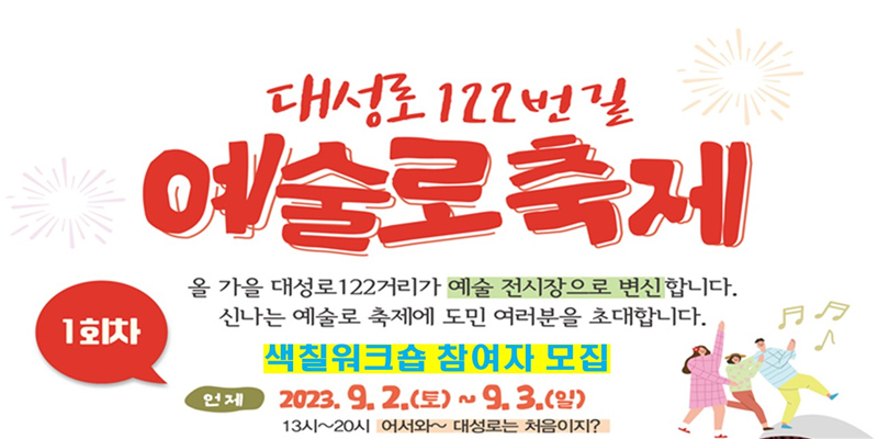 | 2023년 <대성로 122번길 예술로 축제> '색칠워크숍' 참여자 모집 | |||||
