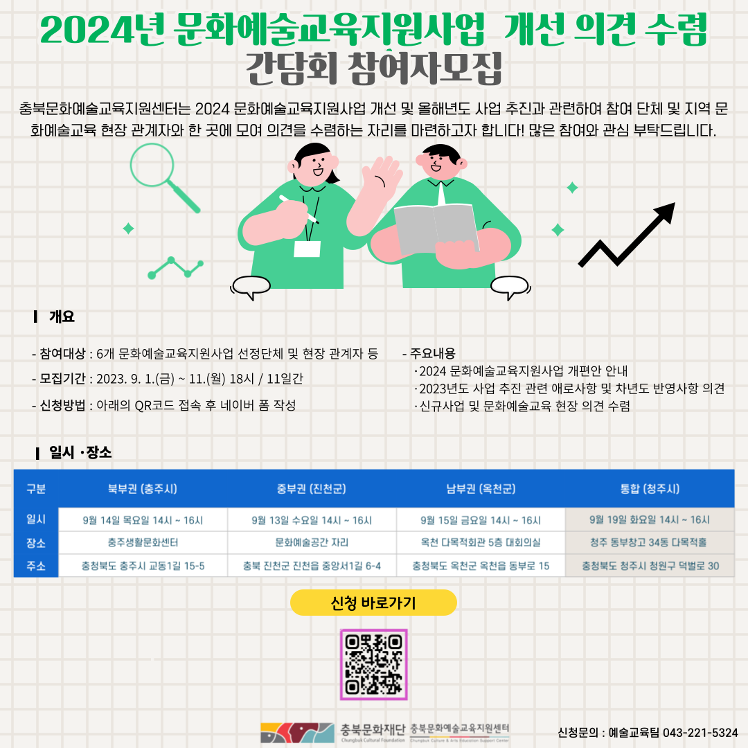 | 2024년 문화예술교육 지원사업 개선 의견 수렴 간담회 참여자 모집 안내 | |||||