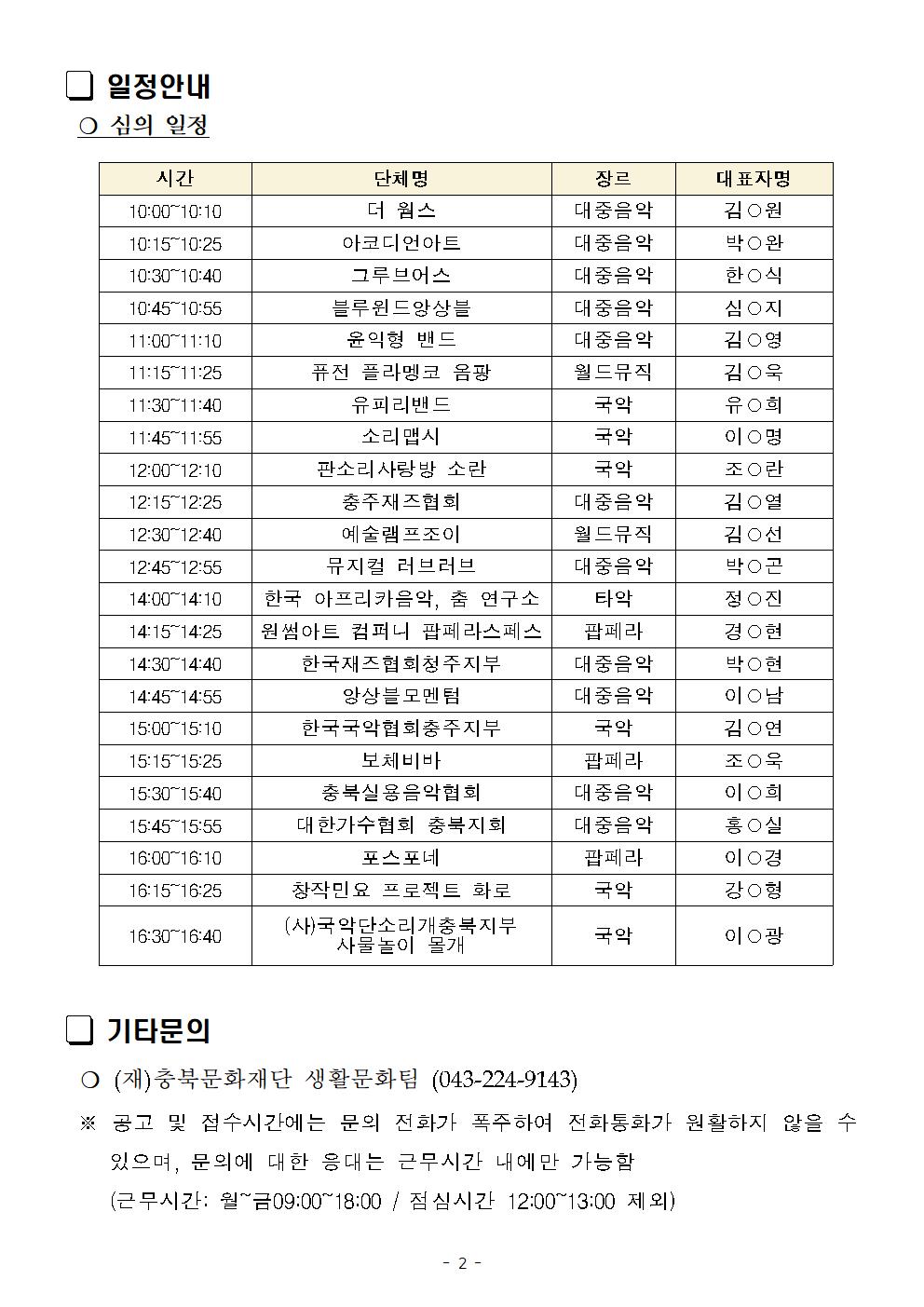 | 2024 우리동네 문화장날 2차 오디션 심의 일정 안내 | |||||