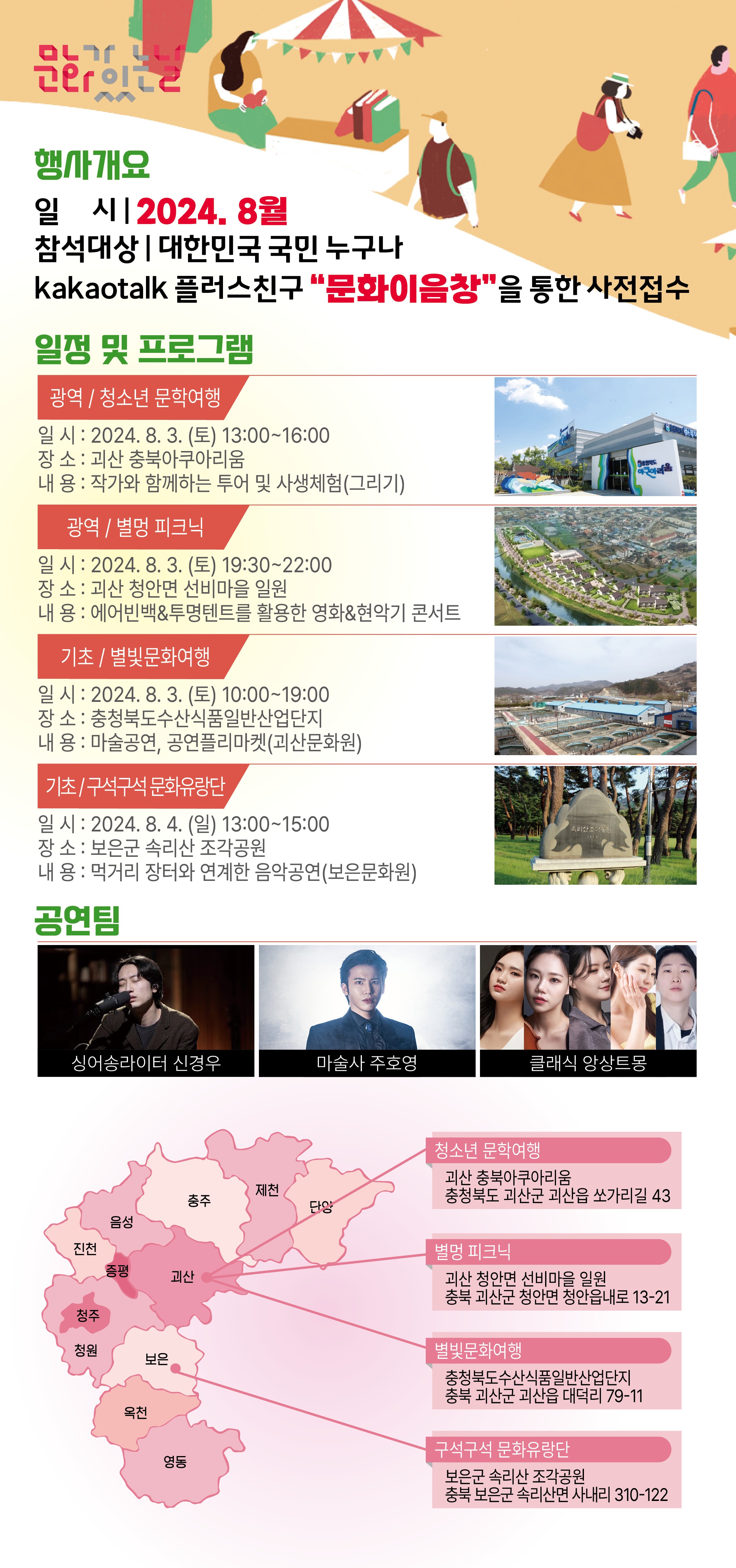 | <충북 웰니스 문화 피크닉> 구석구석 문화배달 7월 프로그램 참여자 모집 | |||||