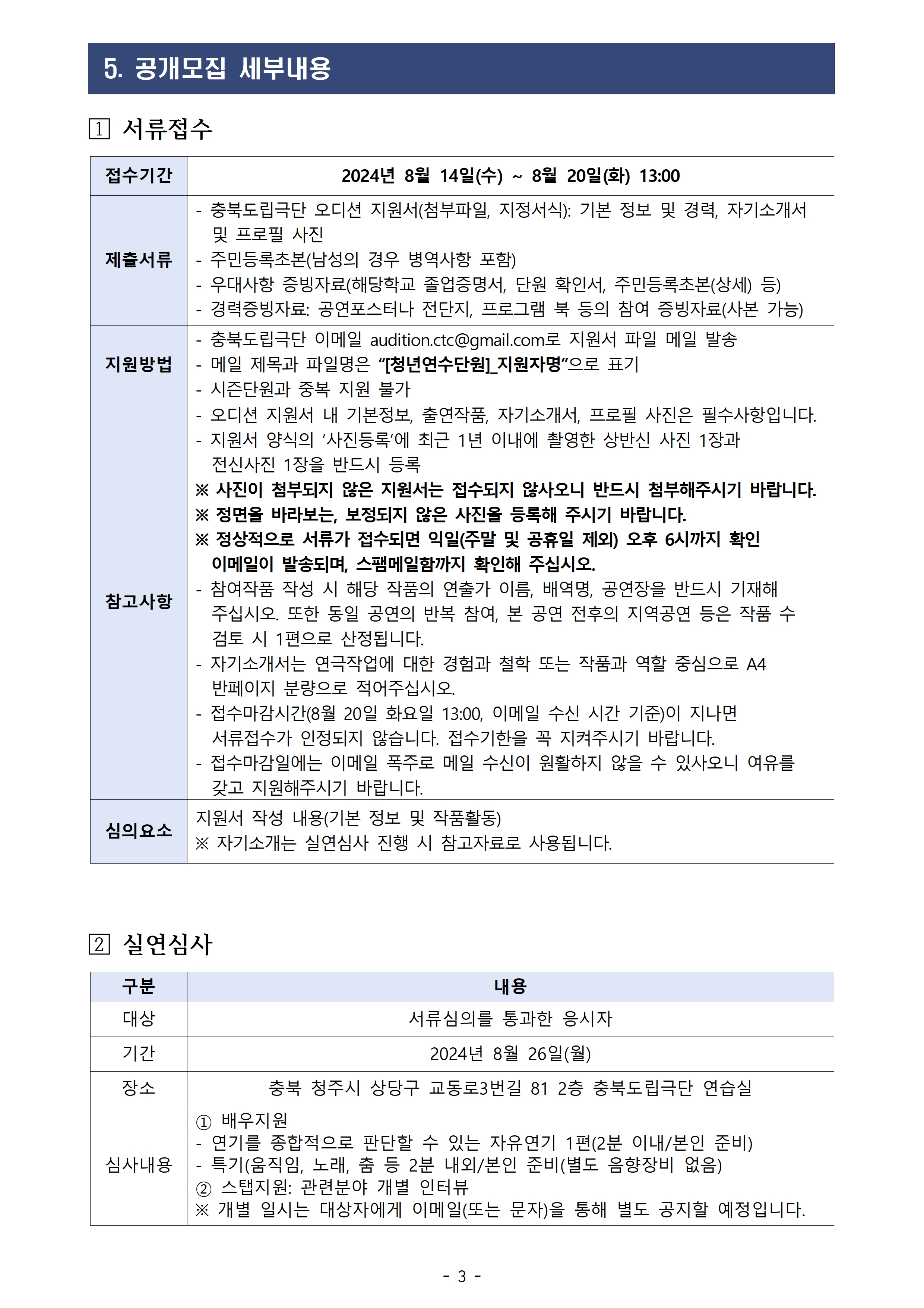 | 2024 충북도립극단 청년연수단원 공개모집 공고(수정) | |||||