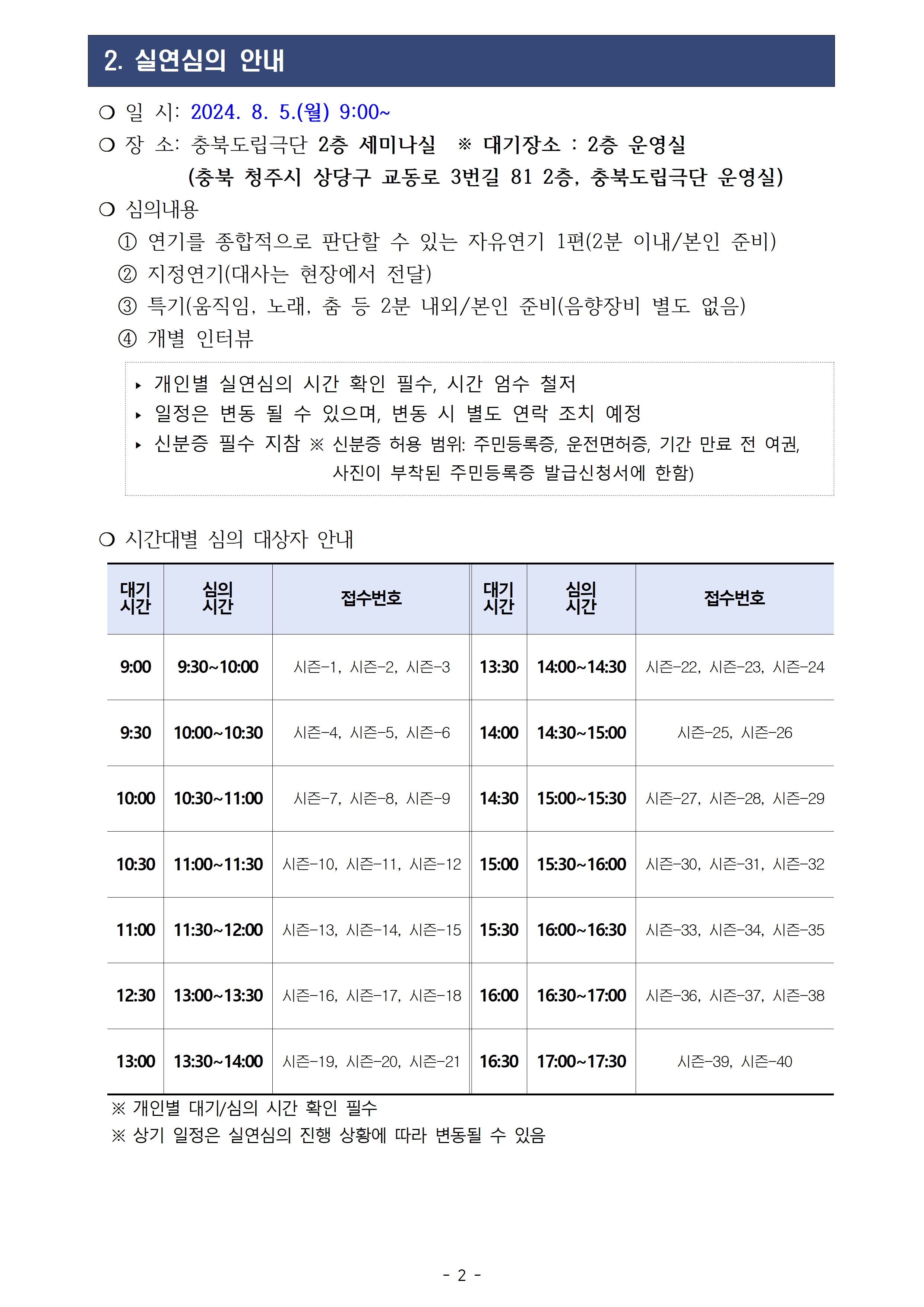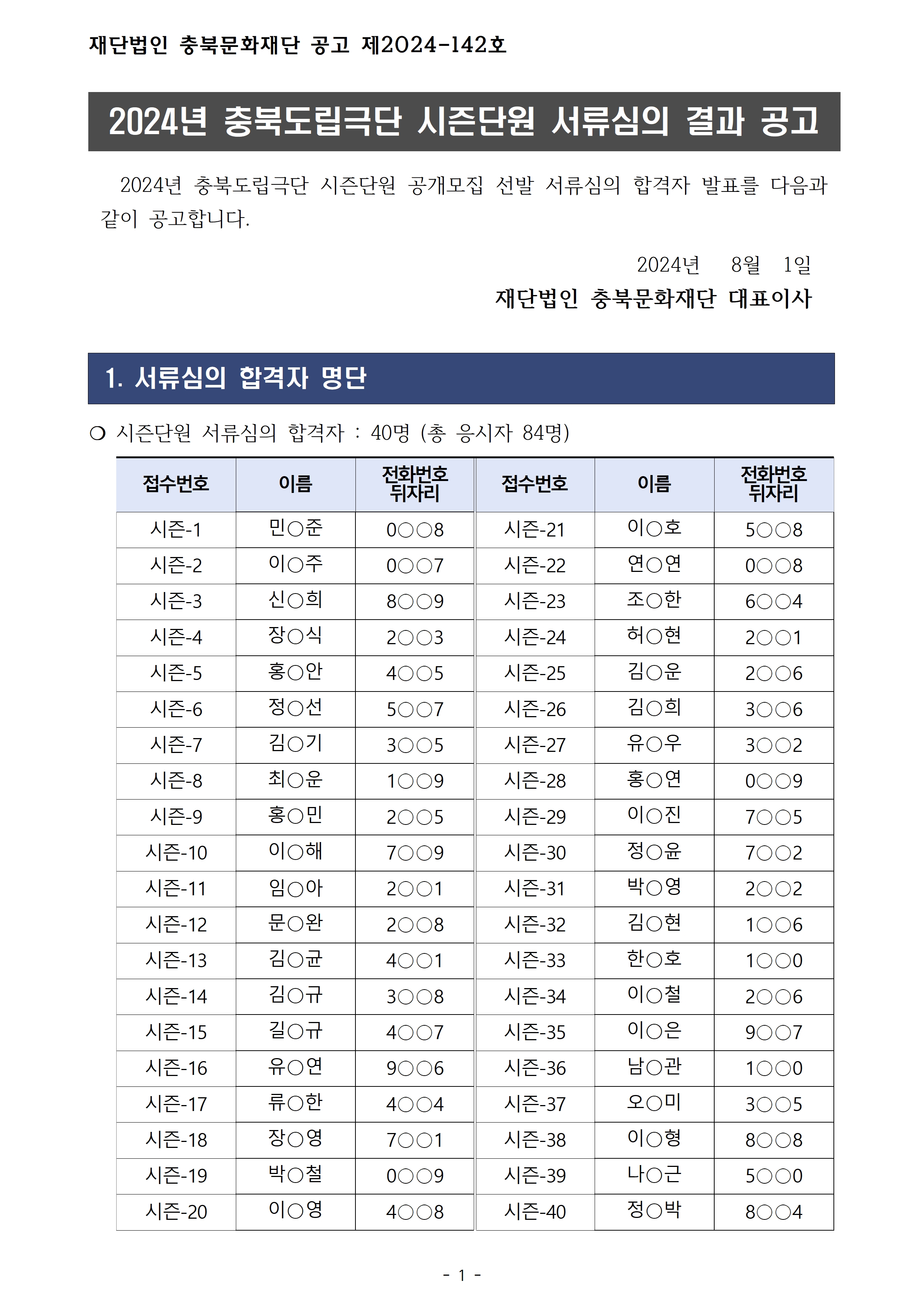 | 2024년 충북도립극단 시즌단원 서류심의 결과 공고 | |||||