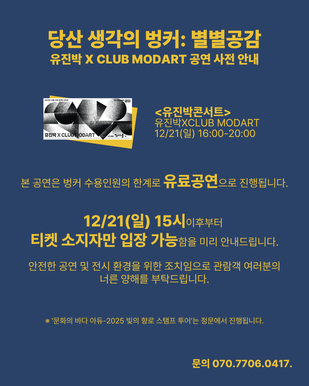 벙커 수용인원의 한계 및 안전상의 이유로 유료공연으로 진행합니다.