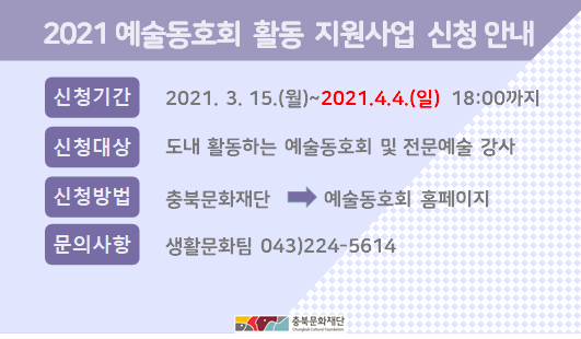 | 2021 예술동호회 활동 지원사업 공모 기간연장 | |||||