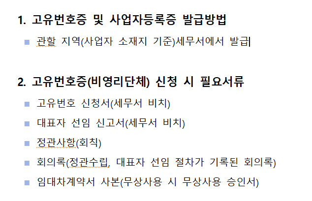 | 고유번호증 발급방법 안내 | |||||