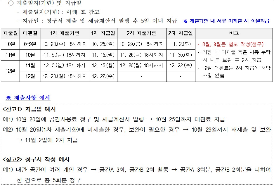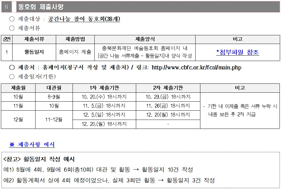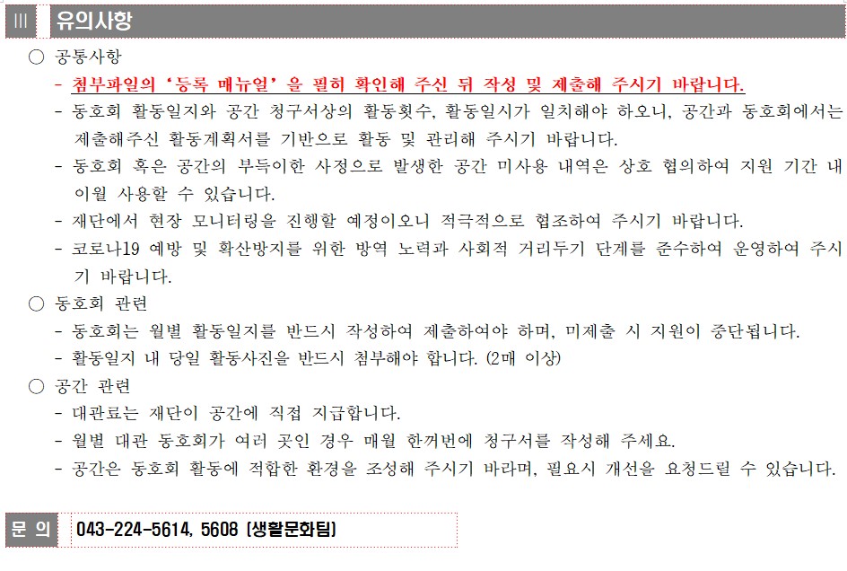 | 2021 예술동호회 활동지원 사업 <공간나눔> 제출사항 안내(청구서, 활동일지 등) | |||||