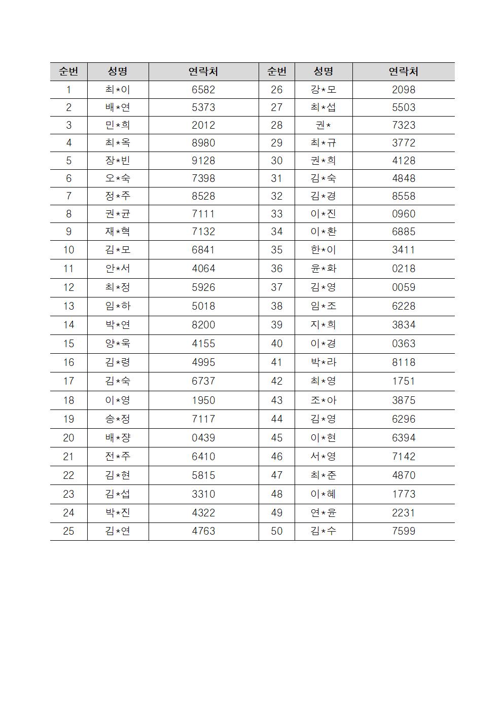 당첨자 분들을 아래와 같이 발표하오니 확인부탁드립니다.