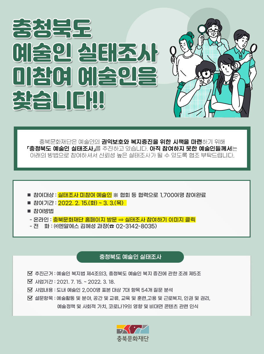 | 충청북도 예술인 실태조사 참여하기(미참여 예술인) | |||||