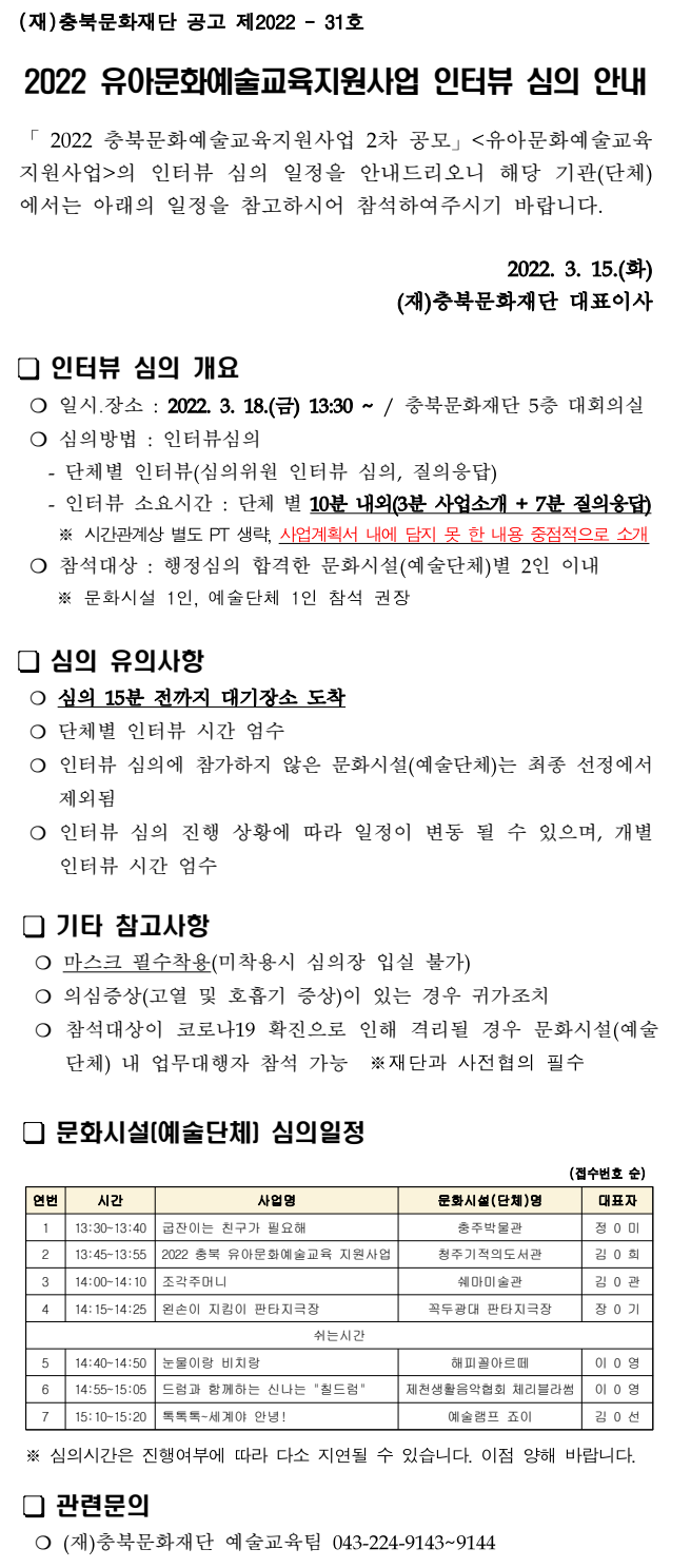 | 2022 유아문화예술교육지원사업 인터뷰 심의 안내 | |||||