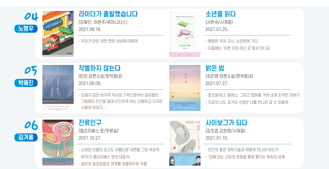 | 2022년 문학예술 리딩충북 '함께 읽어요 추천도서' 12권 목록 | |||||