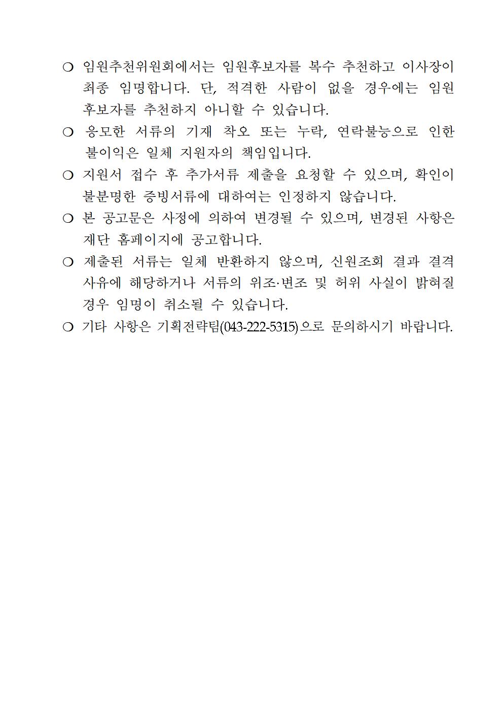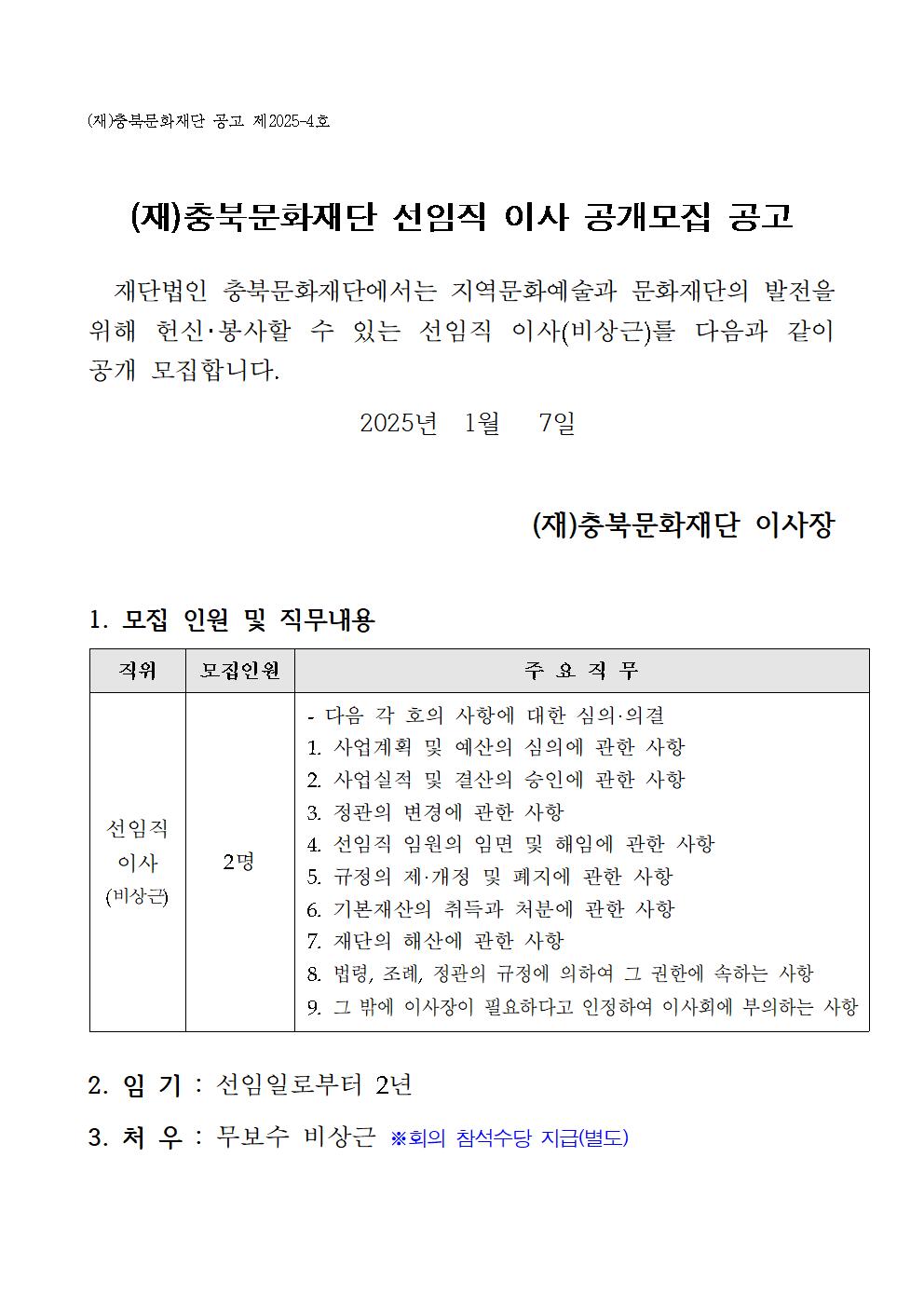 | (재)충북문화재단 선임직 이사 공개모집 공고 | |||||