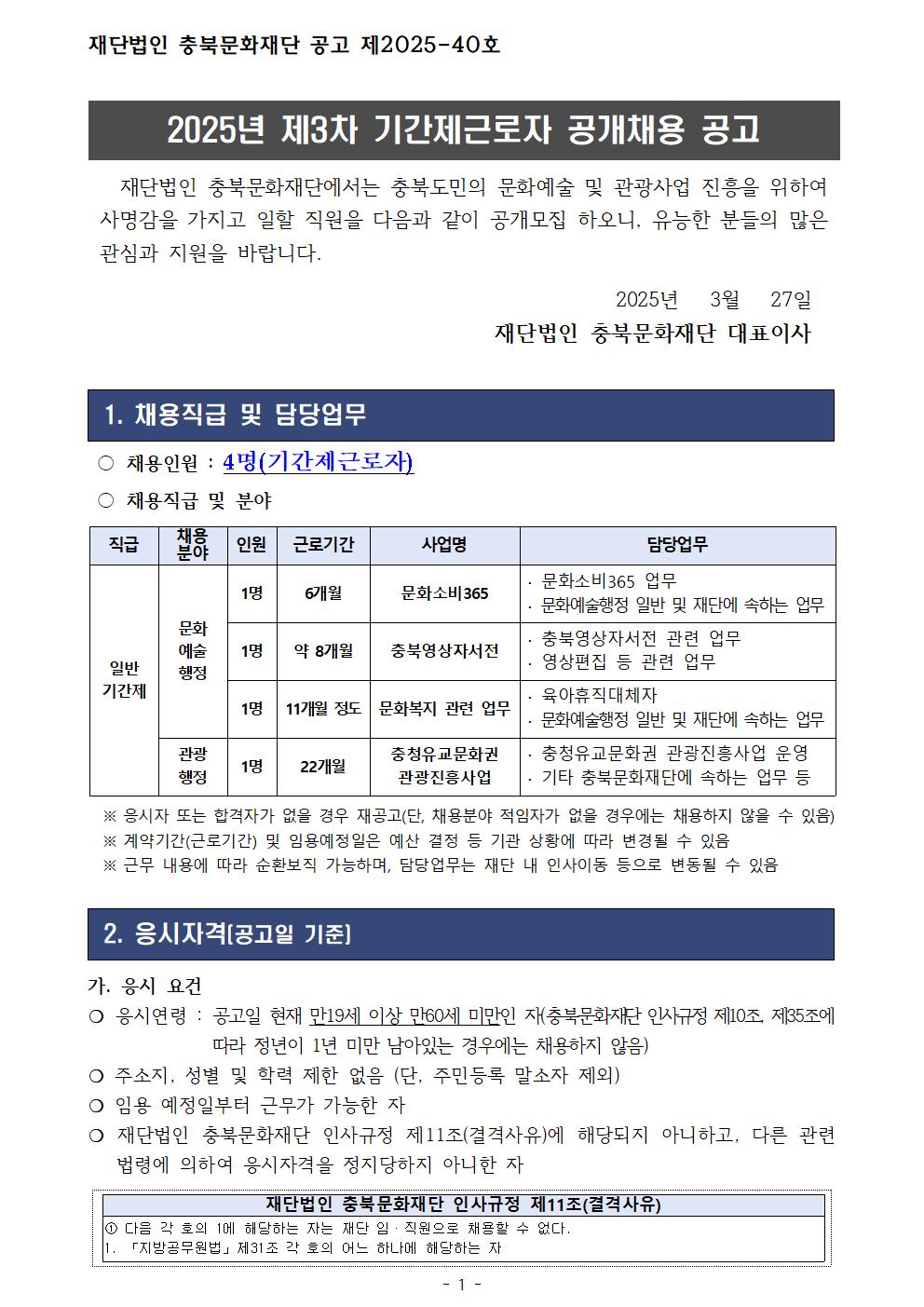 | 2025년 제3차 기간제근로자 공개채용 공고 | |||||