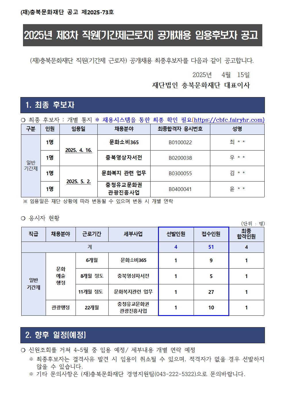 | 2025년 제3차 직원(기간제근로자) 공개채용 임용후보자 공고 | |||||